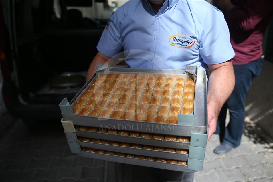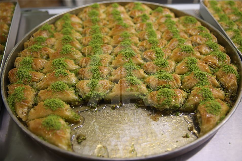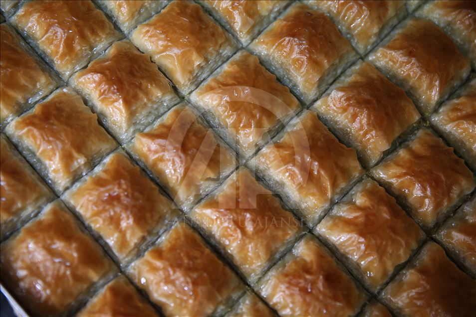 Türkiye'de damak lezzetiyle öne çıkan kentlerin başında gelen Şanlıurfa'da baklavacılar, Ramazan Bayramı dolayısıyla oluşan talebi karşılayabilmek için yoğun mesai harcıyor. Kalitesine göre kilogramı 65-100 lira arasında değişen baklava, bayram öncesi yoğun ilgi görüyor. Şanlıurfa'nın ünlü baklavacılarından Mehmet Üstüneller, AA muhabirine açıklamada bulundu. ( Halil Fidan - Anadolu Ajansı )Halil Fidan