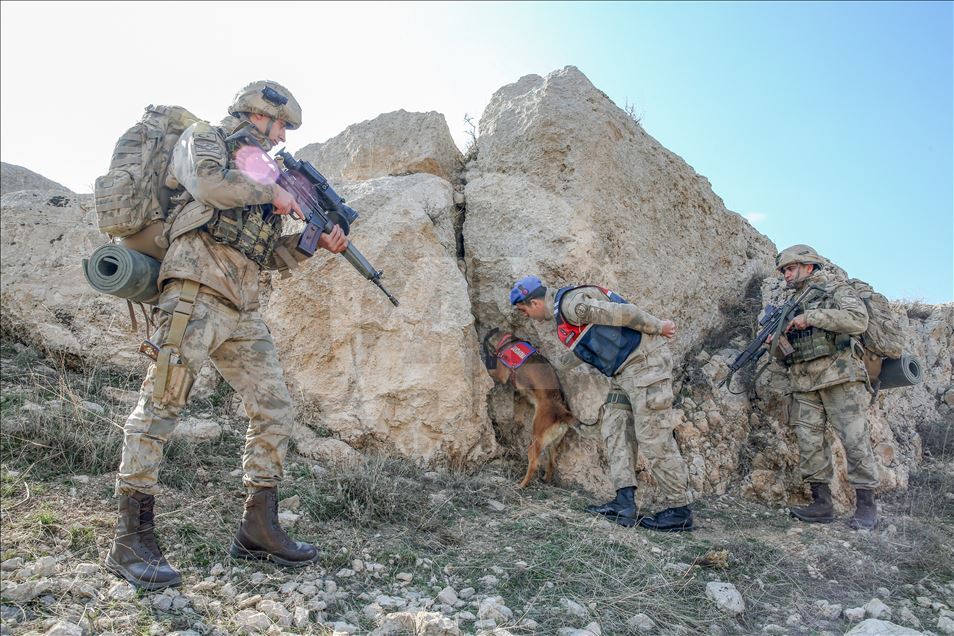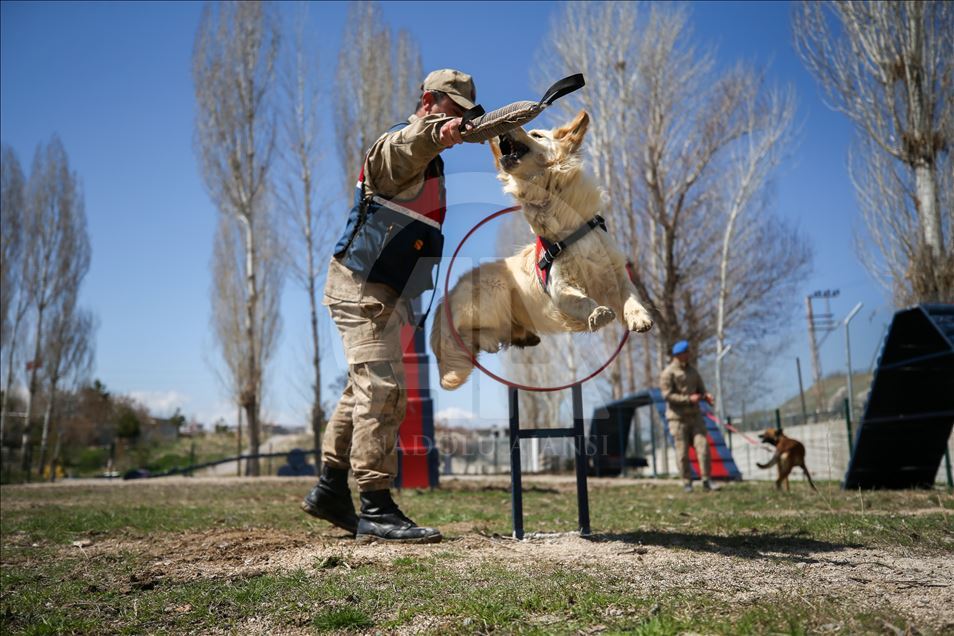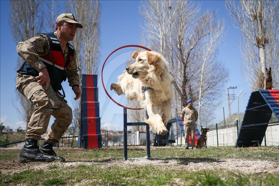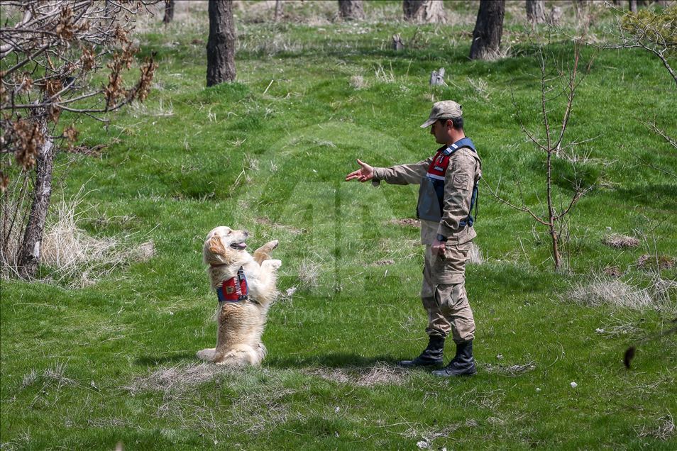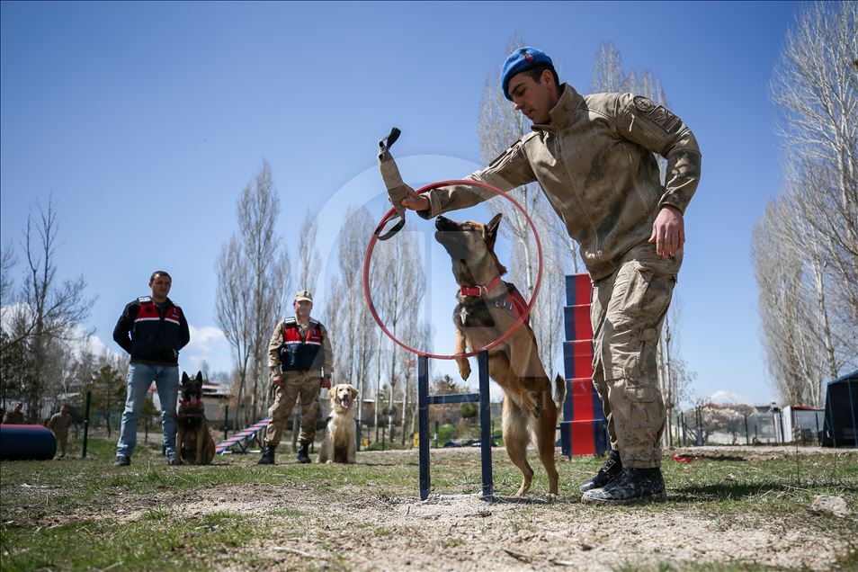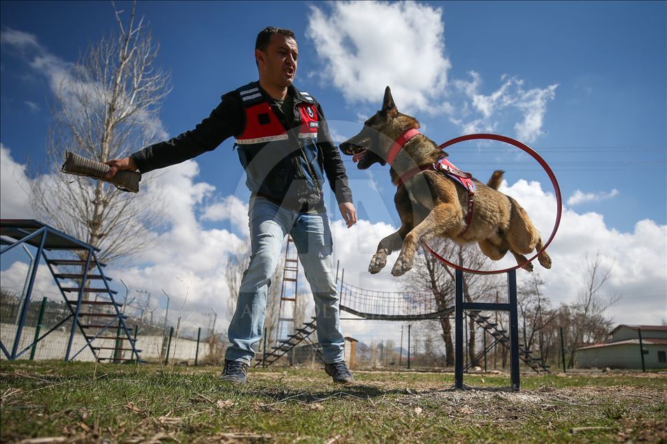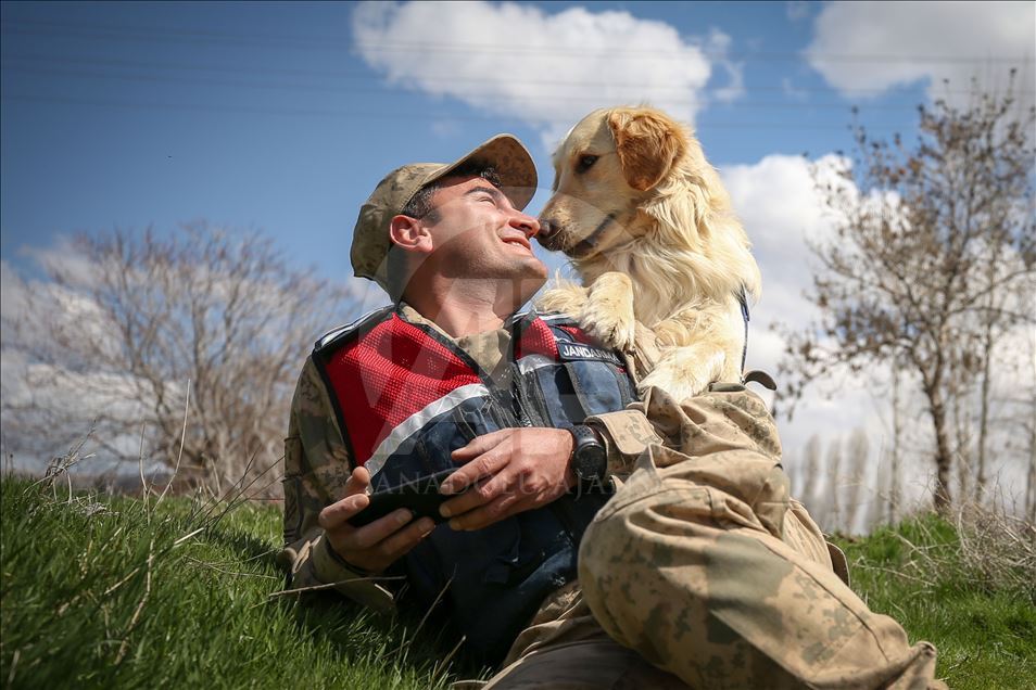 Van'da kaçakçılara geçit vermeyen ve "süper burun" olarak nitelendirilen dedektör köpekler, birbirinden başarılı operasyonların en önemli unsuru olarak suça ve suçlulara geçit vermiyor. Van Jandarma Komutanlığı bünyesinde "uyuşturucu", "mayın", "erzak", "bomba", "kadavra", "iz takip", "arama kurtarma", "asayiş", "tütün tespit" alanlarında kullanılan köpekler, kendileri için oluşturulan özel alanlarda eğitmenleri tarafından antrenman yaptırılarak her türlü göreve hazır bekletiliyor. Köpek ile eğiticisi arasında zamanla duygusal bir bağ oluşuyor. Arama kurtarma köpeği sorumlusu Jandarma Uzman Çavuş Adem Kaya (sağda), AA muhabirine açıklamada bulundu. ( Özkan Bilgin - Anadolu Ajansı )Özkan Bilgin