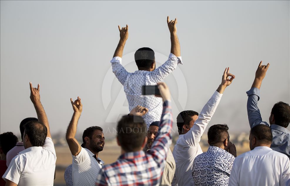 Barış Pınarı Harekatı kapsamında Tel Abyad ilçe merkezinin tamamının YPG/PKK'lı teröristlerden temizlenmesinin ardından Suriye Milli Ordusu (SMO) askerleri tarafından ilçenin Türkiye sınırındaki gümrük kapısına SMO bayrağı çekildi. Sınırın Türkiye tarafında bazı vatandaşlar sevinç yaşadı. ( Emin Sansar - Anadolu Ajansı )Emin Sansar
