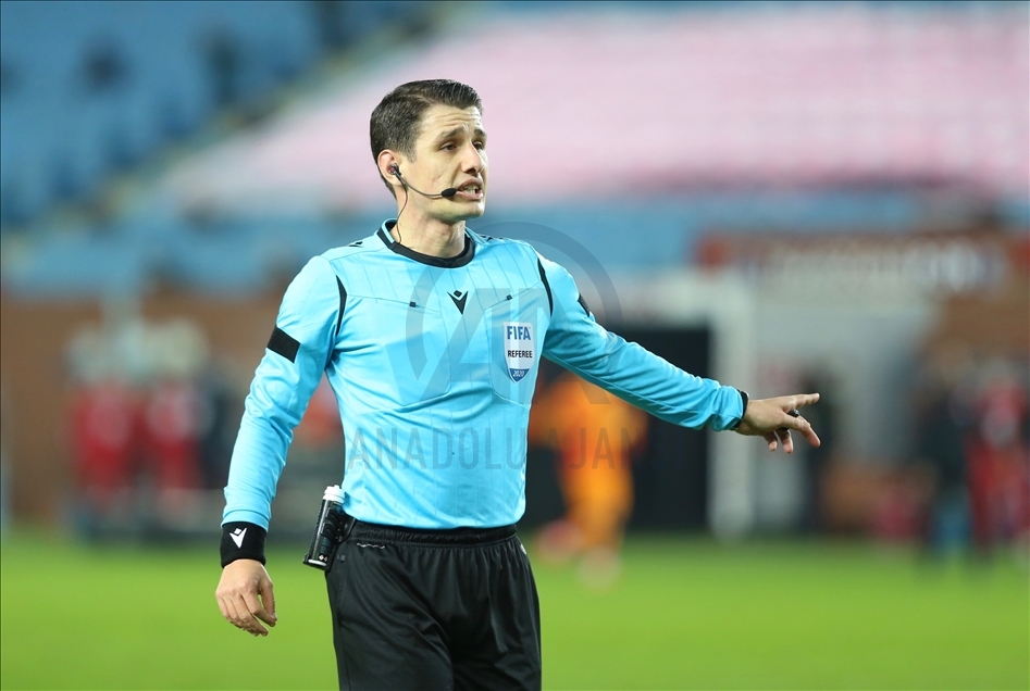 Süper Lig’in 15. haftasında Trabzonspor ile Galatasaray karşılaştı. Bir pozisyonda, maçın hakemi Halil Umut Meler (ortada) futbolcuları uyardı. ( Hakan Burak Altunöz - Anadolu Ajansı )Hakan Burak Altunöz