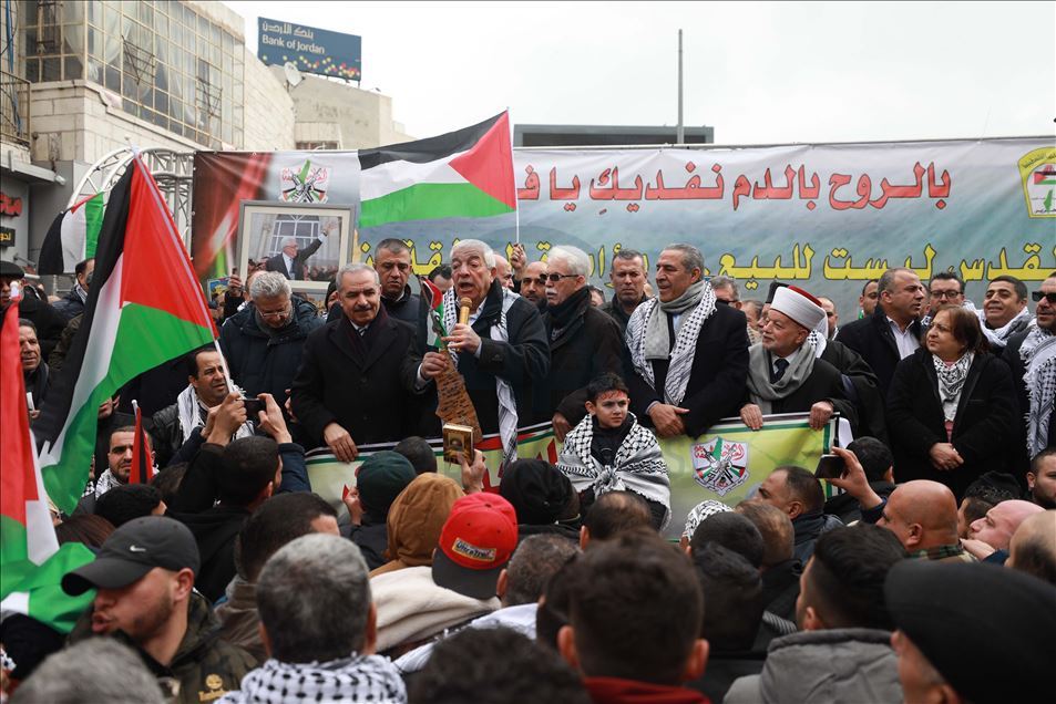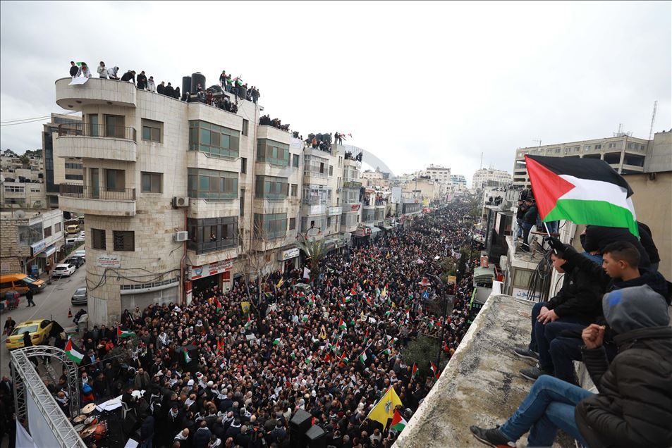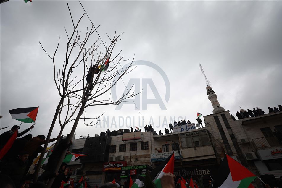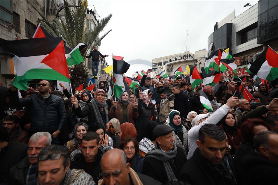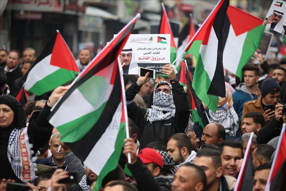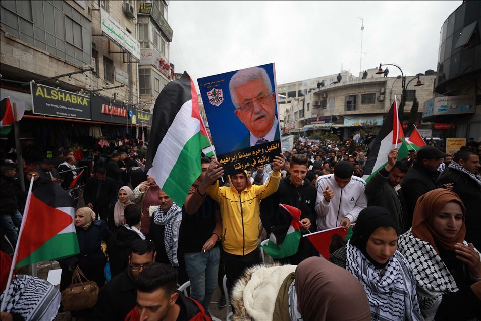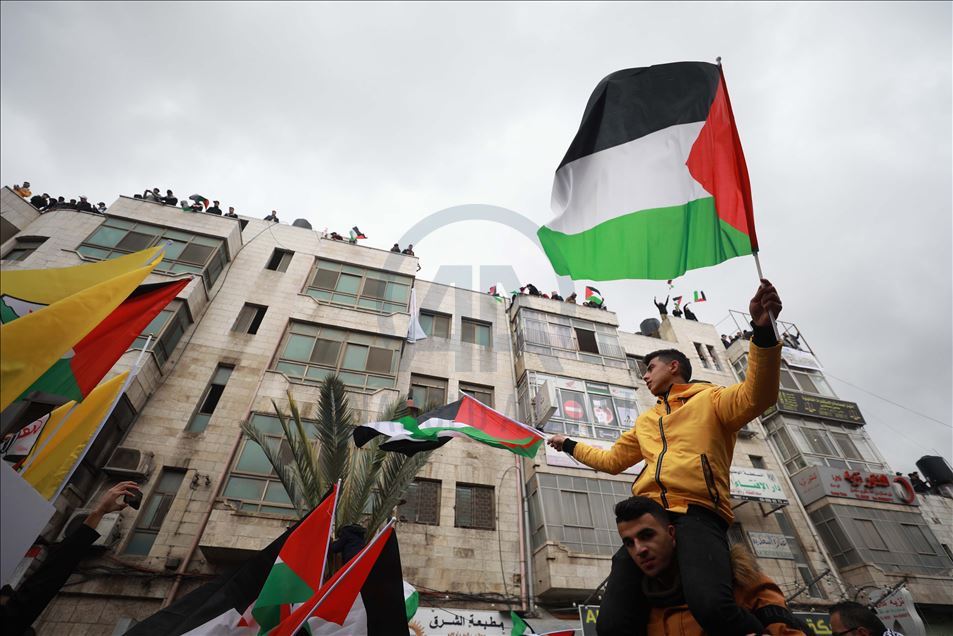 Filistinliler, ABD Başkanı Donald Trump'ın sözde barış planını protesto etmek ve Filistin yönetimine desteklerini dile getirmek için işgal altındaki Batı Şeria'nın Ramallah kentinde gösteri düzenledi.
