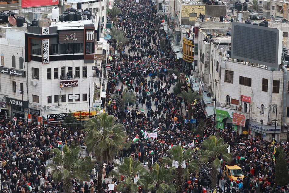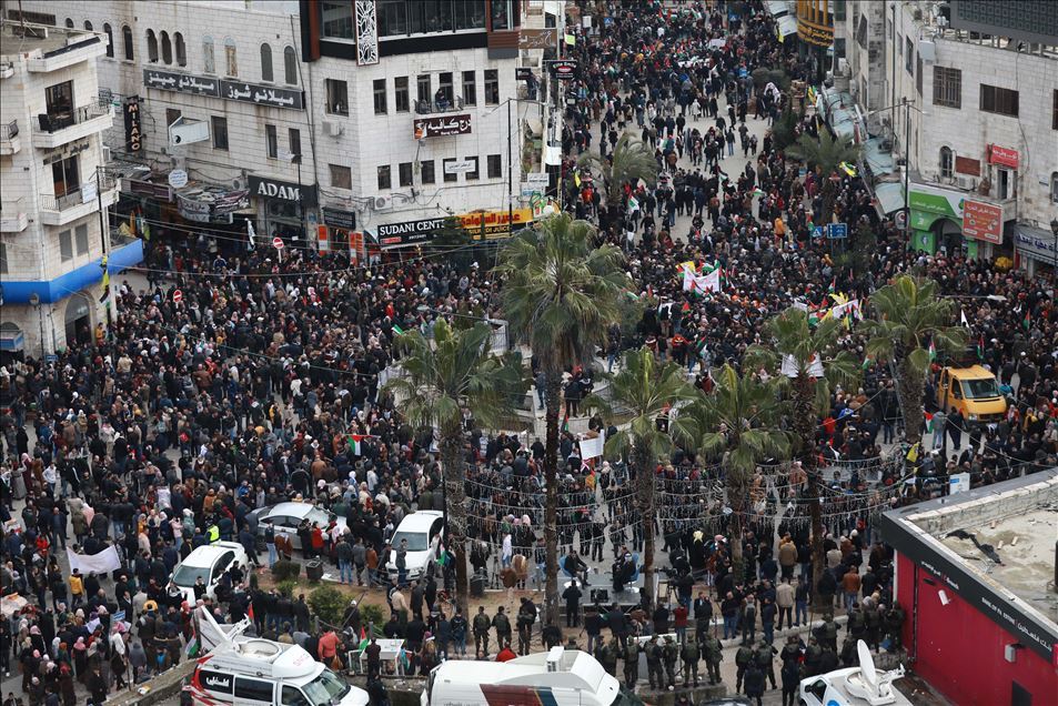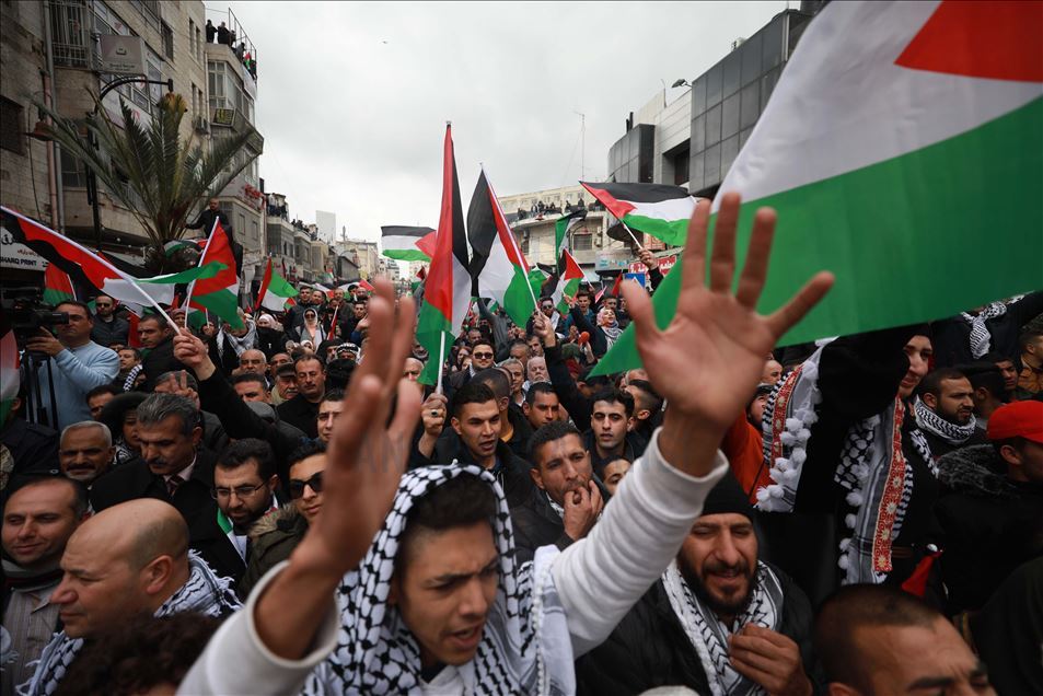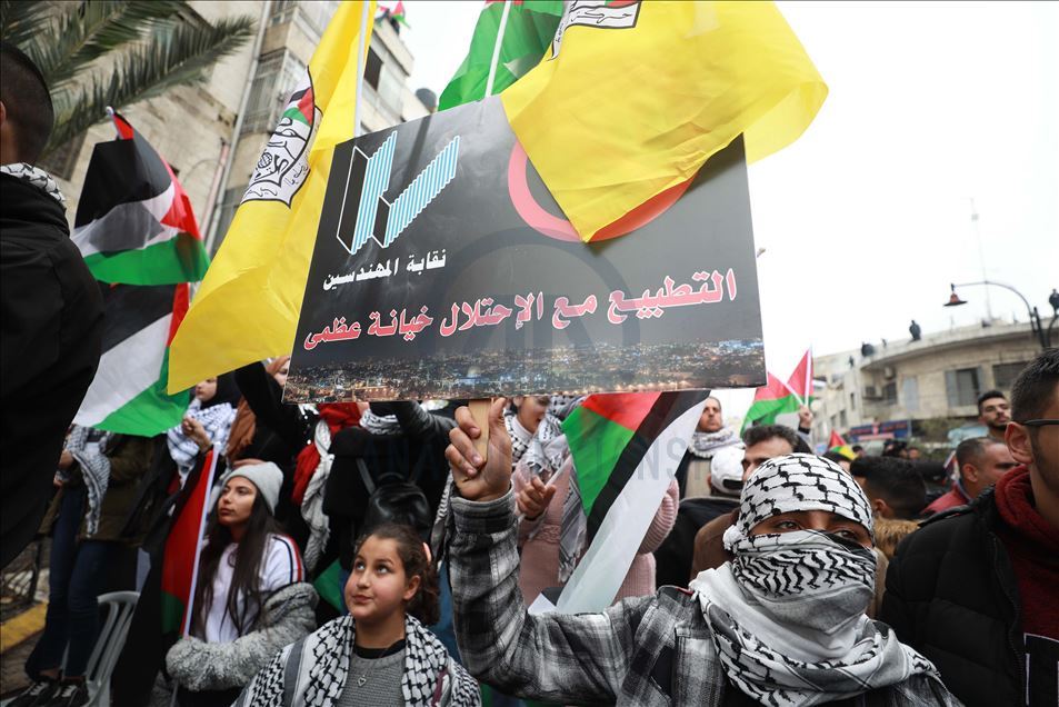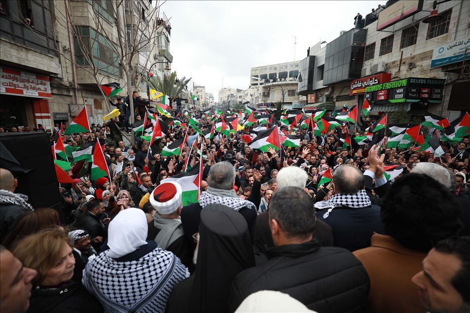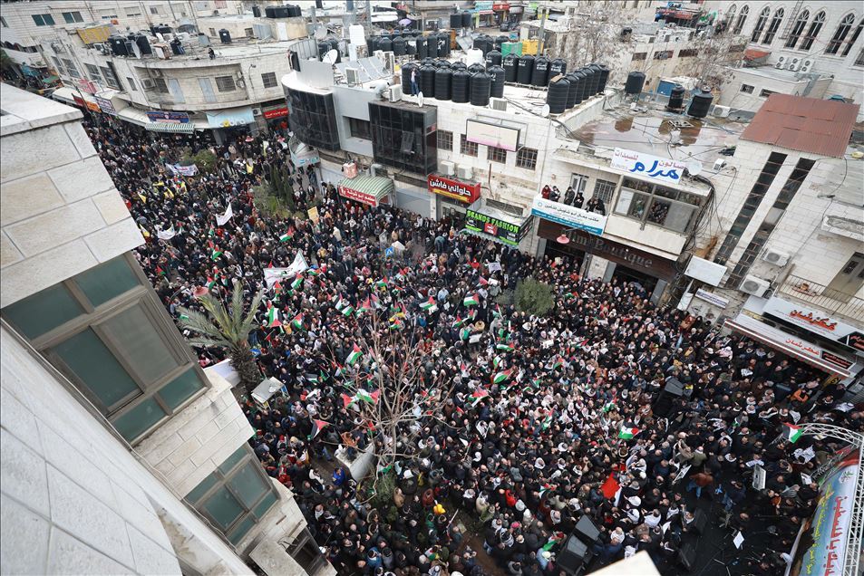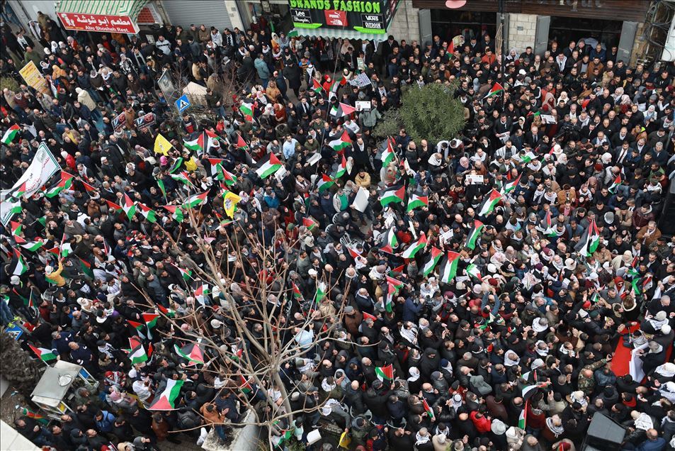 Filistinliler, ABD Başkanı Donald Trump'ın sözde barış planını protesto etmek ve Filistin yönetimine desteklerini dile getirmek için işgal altındaki Batı Şeria'nın Ramallah kentinde gösteri düzenledi.