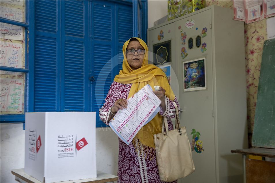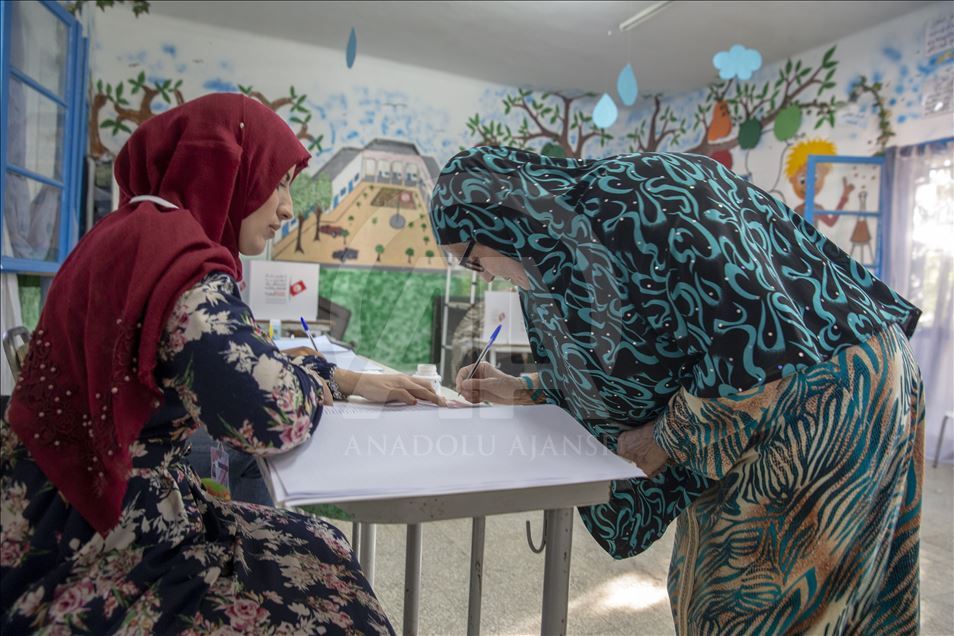Tunus'ta, yaklaşık 7 milyon seçmen 217 sandalyeli parlamentodaki temsilcilerini seçmek üzere sandık başına gitti. Seçmenler, Bin Arus kentindeki Nahj el-Kayravan İlkokulu'nda oy kullandı. ( Yassine Gaidi - Anadolu Ajansı )Yassine Gaidi