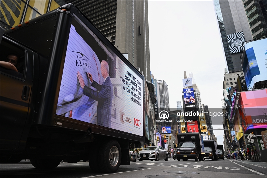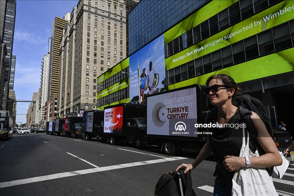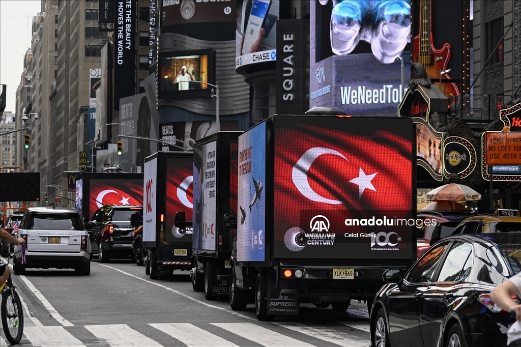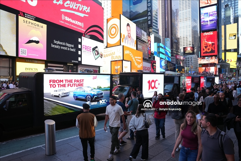 Cumhurbaşkanlığı İletişim Başkanlığı koordinasyonunda yürütülen Cumhuriyetin Yüzüncü Yılı etkinlikleri kapsamında “Türkiye Yüzyılı” New York’ta tanıtıldı. Birleşmiş Milletler 78. Genel Kurulu’nun gerçekleştirildiği New York’un merkezindeki cadde ve sokaklar ile Times Meydanı'ndaki led ekranlarda Türkiye Yüzyılı ve Cumhuriyetin 100. Yılının tanıtımı yapıldı. Times Meydanındaki led ekranlarda “Türkiye Yüzyılı başlıyor” yazılı Türk bayraklı tanıtımlar gerçekleştirildi. Türkiye Yüzyılını anlatan dijital içeriklerin yer aldığı led ekranlı kamyonetler de New York’un kalabalık cadde ve sokaklarında dolaştırıldı. 100. Yıl marşıyla tanıtımların yapıldığı kamyonetlerin ekranlarında, Maziden Atiye, İstikbalden İstiklale sloganlarıyla Türkiye Yüzyılı’nın barışın, istikrarın, istikbalin ve haklının yüzyılı olduğu vurgulandı. Görsellerde Türkiye’nin savunma, sanayi, teknoloji ve ulaştırma gibi alanlarda gerçekleştirildiği atılımlara da yer verildi. ( Selçuk Acar - Anadolu Ajansı )Selçuk Acar