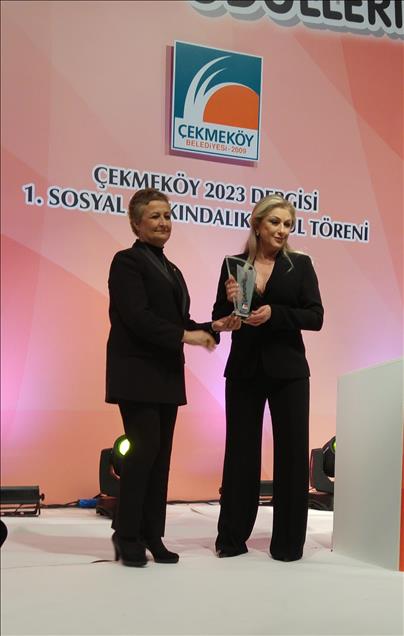 Çekmeköy Belediyesi'nin aylık olarak yayımladığı "Çekmeköy 2023" dergisinin, "1. Sosyal Farkındalık Ödülleri" sahiplerini buldu. "En İyi Sosyal Proje" dalında "Çocuklar Gülsün Diye" projesi ile Gülben Ergen (solda) ödüle layık görüldü. ( Musa Alcan - AA )Musa Alcan