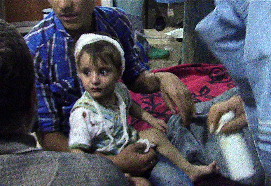 Suriye ordusuna ait savaş uçağının ülkenin kuzeybatısındaki İdlib'in Selkin kasabasına "vakum bombasıyla" saldırmasında 20 kişinin öldüğü çok sayıda kişinin yaralandığı bildirildi. Yaralılar arasında küçük yaşta çocukların da olduğu görüldü. (Stringer - Anadolu Ajansı)Stringer