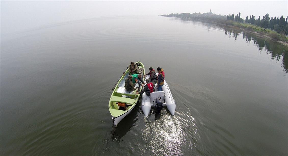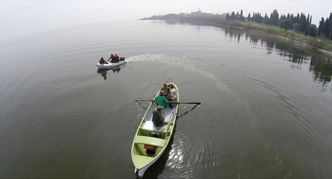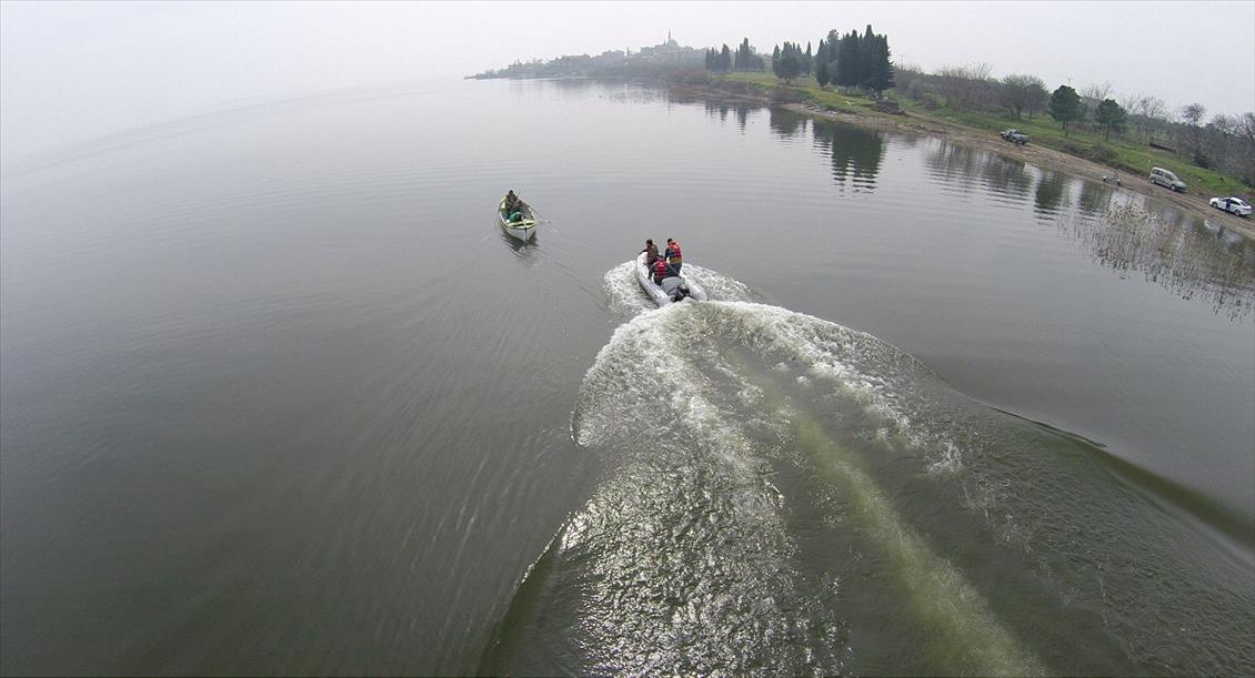 Orman ve Su İşleri 2'nci Bölge Müdürlüğü, Bursa'nın Karacabey ilçesindeki Uluabat Gölü başta olmak üzere çevrede kaçak avlananların tespitinde "multikopter" cihazıyla havadan kameralı takip dönemini başlattı. (İsmail Ersan - Anadolu Ajansı)İsmail Ersan