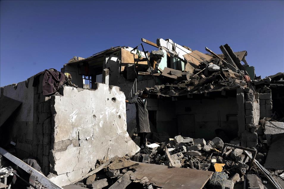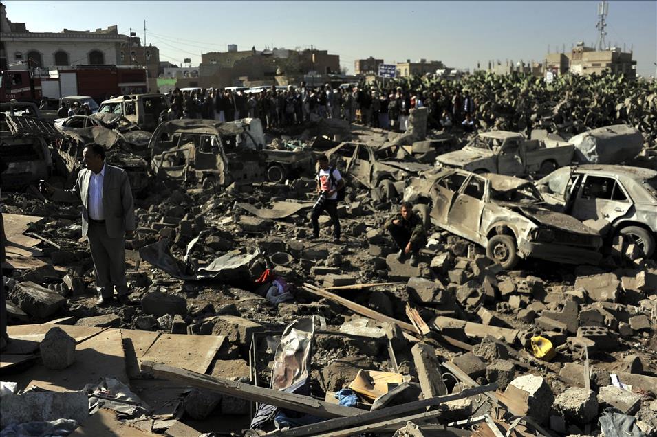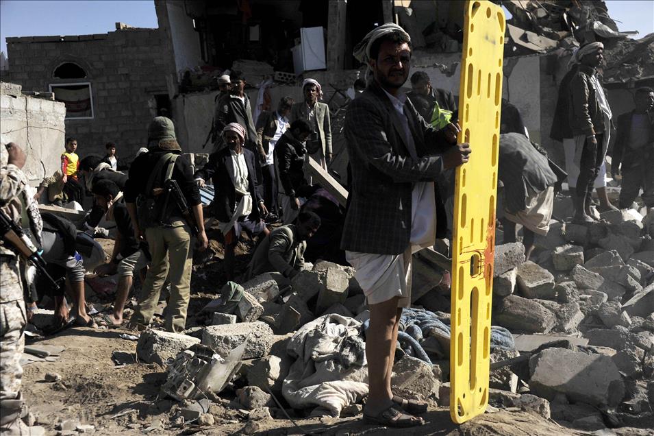 Yemen'de Suudi Arabistan'ın öncülüğünde 10 Arap ülkesinin katılımıyla düzenlenen hava operasyonunda Husi Ensarullah Hareketine ve Devrik lider Ali Abdullah Salih'e bağlı askeri üslere ''Gece baskını'' düzenlendi. Operasyonda isabet alan bazı sivil yerleşim yerlerinde 25 sivilin hayatını kaybettiği belirtildi. Sana Havaalanı çevresindeki evlerin bazıları yıkılırken enkaz altında arama kurtarma çalışmaları yapıldı. (Mohammed Hamoud - Anadolu Ajansı)Mohammed Hamoud