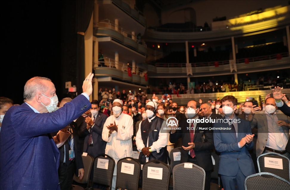 Cumhurbaşkanı Recep Tayyip Erdoğan, Türk-Amerikan Ulusal Yönlendirme Komitesince (TASC) düzenlenen "Daha Adil Bir Dünya Mümkün" başlıklı konferansa katıldı. Cumhurbaşkanı Erdoğan, konferansa katılanları selamladı. ( TCCB / Murat Çetinmühürdar - Anadolu Ajansı )TCCB / Murat Çetinmühürdar