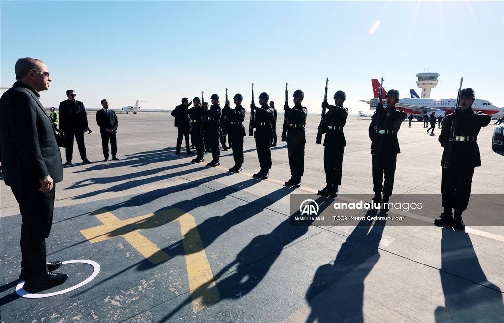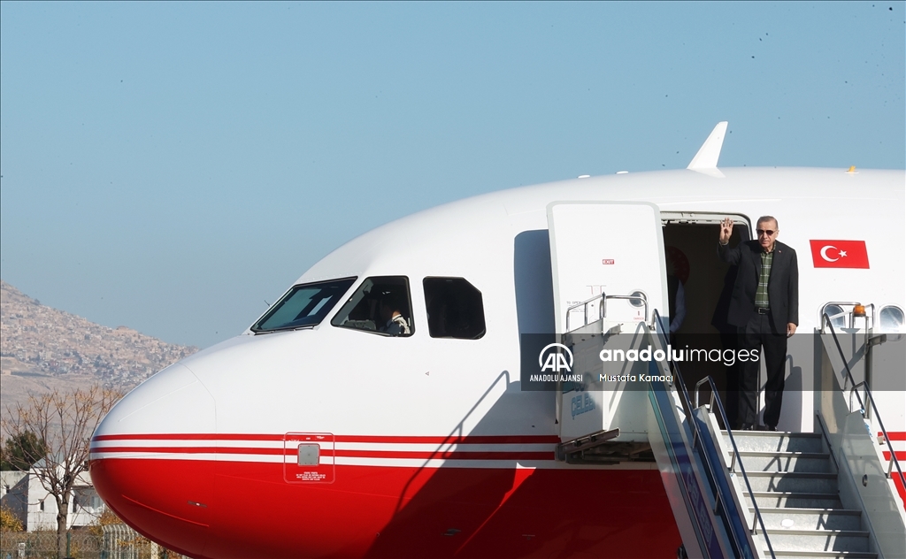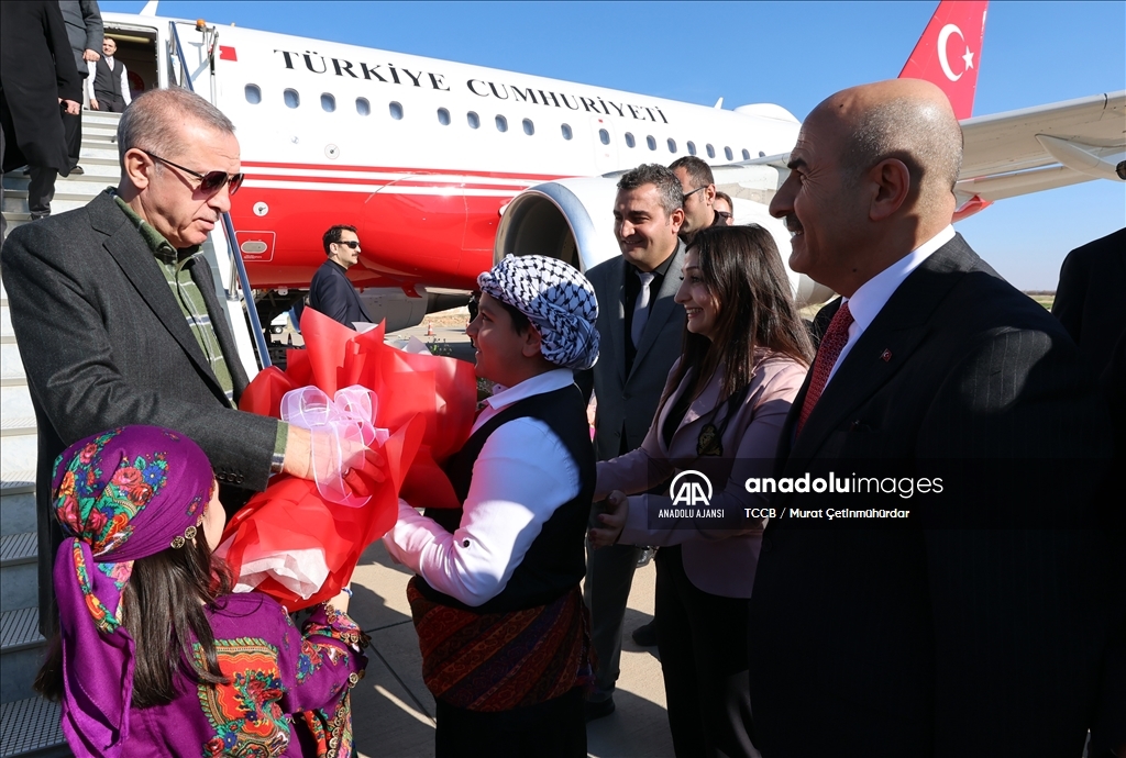 Cumhurbaşkanı Recep Tayyip Erdoğan, "Mardin Derik Ovası Sulaması", "Midyat-Nusaybin Yolu", "Ömerli ve Dargeçit Doğalgaz Verme" ile yapımı tamamlanan diğer projelerin toplu açılış törenine katılmak üzere Mardin Havalimanı'na geldi. ( TCCB/Murat Çetinmühürdar - Anadolu Ajansı )TCCB/Murat Çetinmühürdar