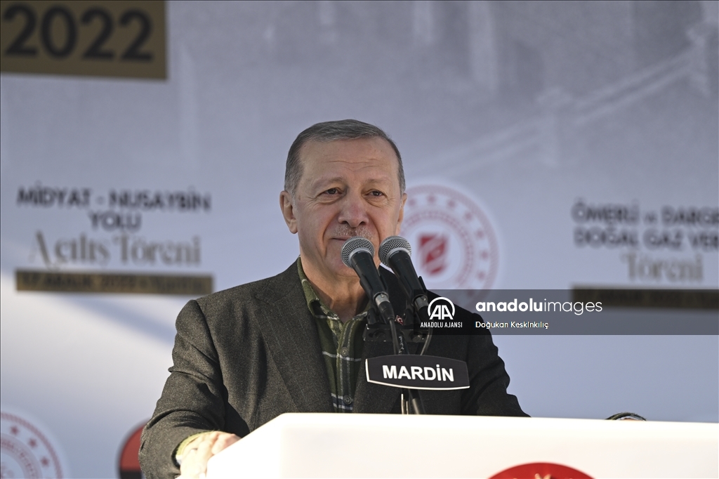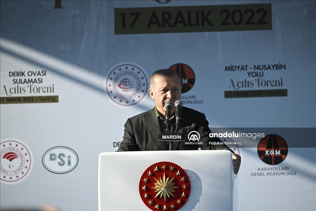 Cumhurbaşkanı Recep Tayyip Erdoğan, "Mardin Derik Ovası Sulaması", "Midyat-Nusaybin Yolu", "Ömerli ve Dargeçit Doğalgaz Verme" ile yapımı tamamlanan diğer projelerin toplu açılış törenine katılarak konuşma yaptı. ( Doğukan Keskinkılıç - Anadolu Ajansı )Doğukan Keskinkılıç