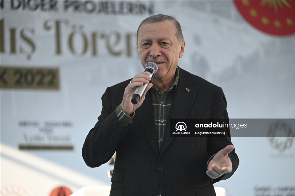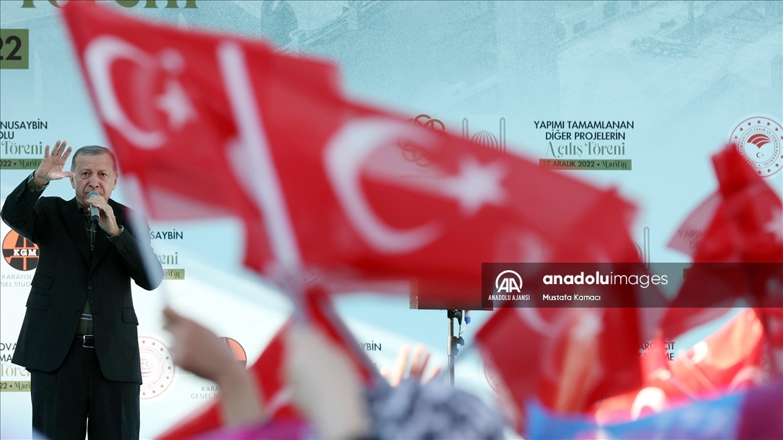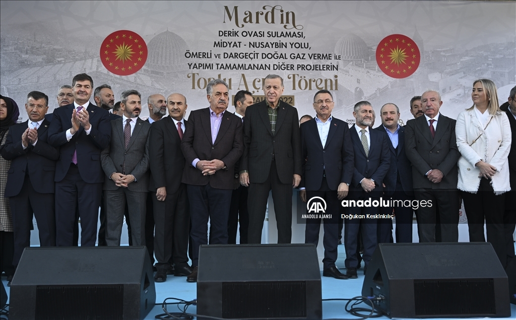 Cumhurbaşkanı Recep Tayyip Erdoğan, "Mardin Derik Ovası Sulaması", "Midyat-Nusaybin Yolu", "Ömerli ve Dargeçit Doğalgaz Verme" ile yapımı tamamlanan diğer projelerin toplu açılış törenine katılarak vatandaşlara hitap etti. ( TCCB / Murat Çetinmühürdar - Anadolu Ajansı )TCCB / Murat Çetinmühürdar