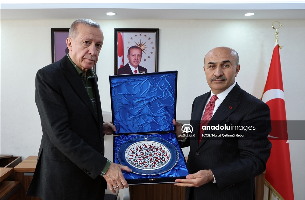 Cumhurbaşkanı Recep Tayyip Erdoğan, Mardin Valisi ve Büyükşehir Belediye Başkan Vekili Mahmut Demirtaş'ı ziyaret etti. Cumhurbaşkanı Erdoğan, tören mangasını selamladı. ( TCCB/Murat Çetinmühürdar - Anadolu Ajansı )TCCB/Murat Çetinmühürdar