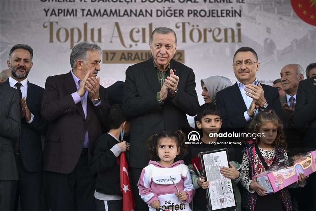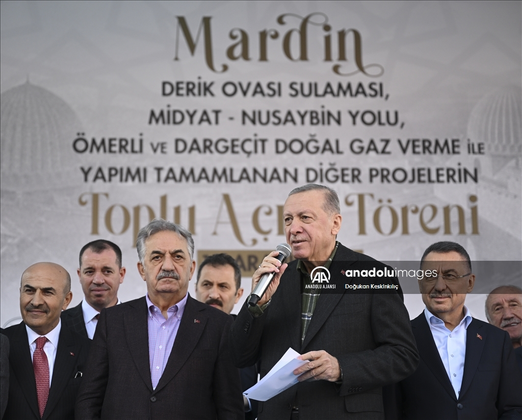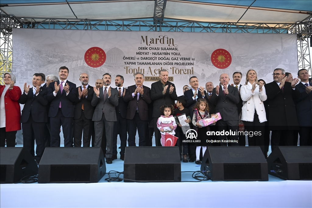 Cumhurbaşkanı Recep Tayyip Erdoğan, "Mardin Derik Ovası Sulaması", "Midyat-Nusaybin Yolu", "Ömerli ve Dargeçit Doğalgaz Verme" ile yapımı tamamlanan diğer projelerin toplu açılış törenine katıldı. Cumhurbaşkanı Erdoğan, burada bir konuşma yaptı. ( Doğukan Keskinkılıç - Anadolu Ajansı )Doğukan Keskinkılıç