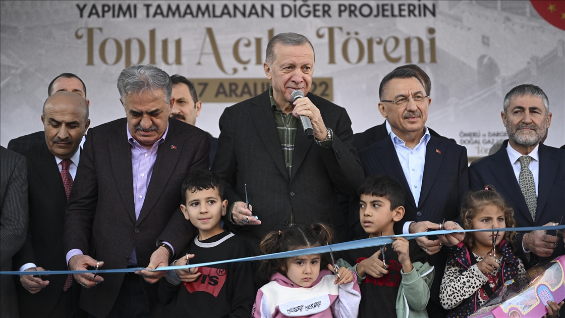 Cumhurbaşkanı Recep Tayyip Erdoğan, "Mardin Derik Ovası Sulaması", "Midyat-Nusaybin Yolu", "Ömerli ve Dargeçit Doğalgaz Verme" ile yapımı tamamlanan diğer projelerin toplu açılış törenine katıldı. ( TCCB / Murat Çetinmühürdar - Anadolu Ajansı )TCCB / Murat Çetinmühürdar