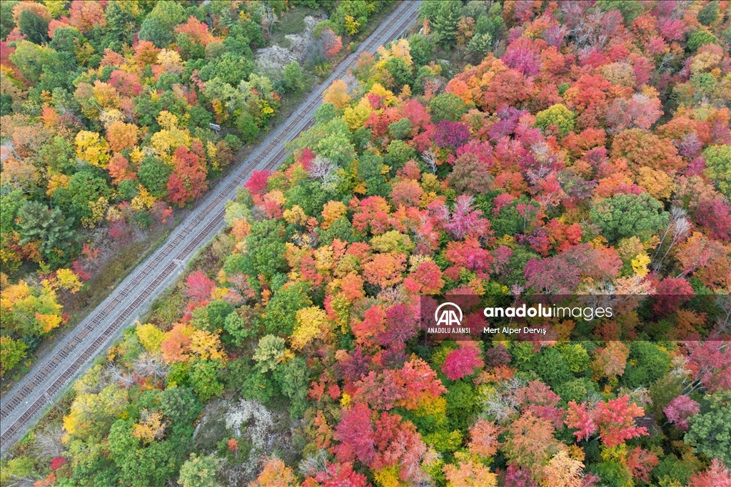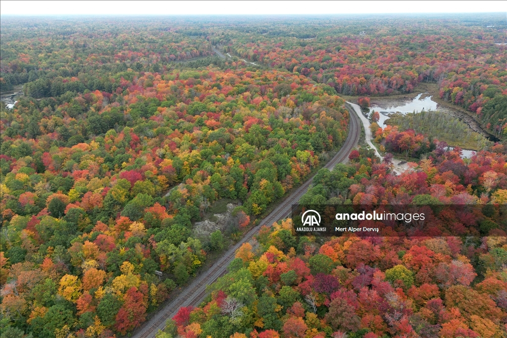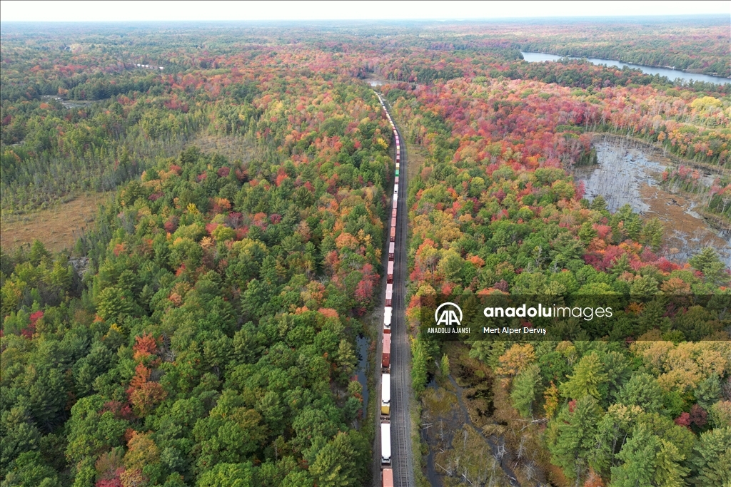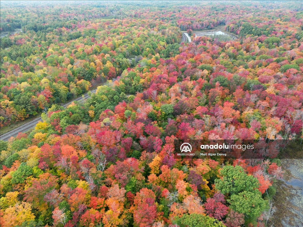 Kanada’nın Ontario eyaletindeki Muskoka Gölü etrafındaki ormanlık alan, sonbahar renkleriyle güzel görüntüler oluşturdu. ( Mert Alper Dervış - Anadolu Ajansı )Mert Alper Dervış
