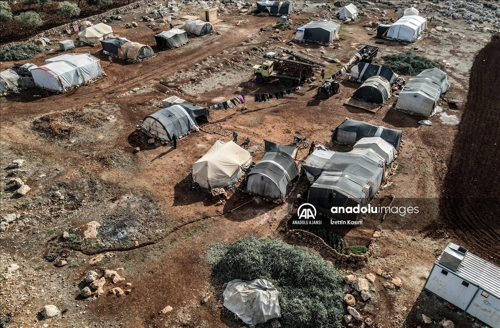 Suriye'nin kuzeybatısındaki İdlib ilinde, Beşşar Esed rejimi ve destekçilerinin saldırılarından kaçarak sınır hattındaki kamplara sığınan siviller, kış mevsiminin başlamasıyla zor günler geçiriyor. ( İzettin Kasım - Anadolu Ajansı )