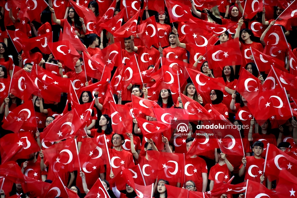 Birinci Dünya savaşından mağlup çıkan Osmanlı Devleti ile İtilaf Devletleri arasında 30 Ekim 1918'de imzalanan Mondros Mütarekesinin ardından düşman gemileri Çanakkale Boğazı'ndan geçerek İstanbul'a demirledi. Anadolu, düşman kuvvetleri tarafından adım adım işgal edilmeye başladı. İstanbul hükümeti, Anadolu'da asayişi sağlamak üzere Mustafa Kemal Paşa'yı 9. Ordu Müfettişi olarak görevlendirdi. 16 Mayıs'ta Bandırma Vapuru ile İstanbul'dan Samsun'a hareket eden Mustafa Kemal Paşa, 19 Mayıs 1919'da Samsun'a ulaştı. Büyük önderin Samsun'a çıkışı, Yunan askerlerinin denize döküldüğü 9 Eylül 1922'ye kadar sürecek büyük mücadelenin ilk adımını oluşturdu. Kurtuluş Savaşı'nın başlangıç tarihi olarak kabul edilen ve Türk milleti için dönüm noktalarından biri olan 19 Mayıs, her yıl tüm yurtta "Atatürk’ü Anma, Gençlik ve Spor Bayramı" olarak kutlanıyor. Balıkesir'de Şehit Turgut Solak Spor Salonu'nda düzenlenen törene katılan gençler, askeri bando eşliğinde marşlar söyleyerek doyasıya eğlendi. (Arşiv-18.05.2022) ( Miraç Kaya - Anadolu Ajansı )