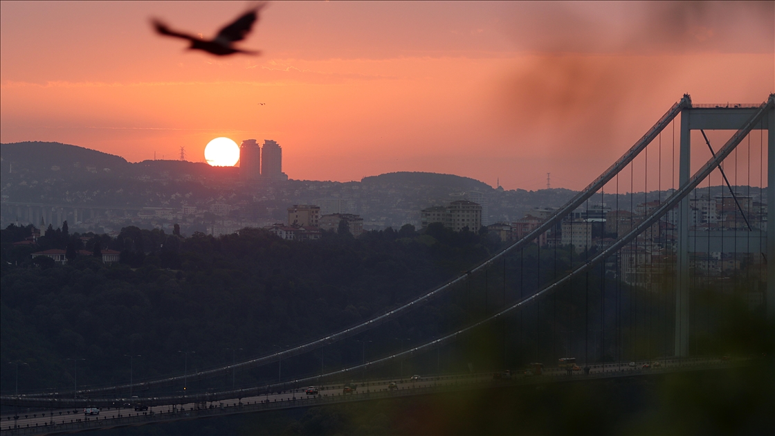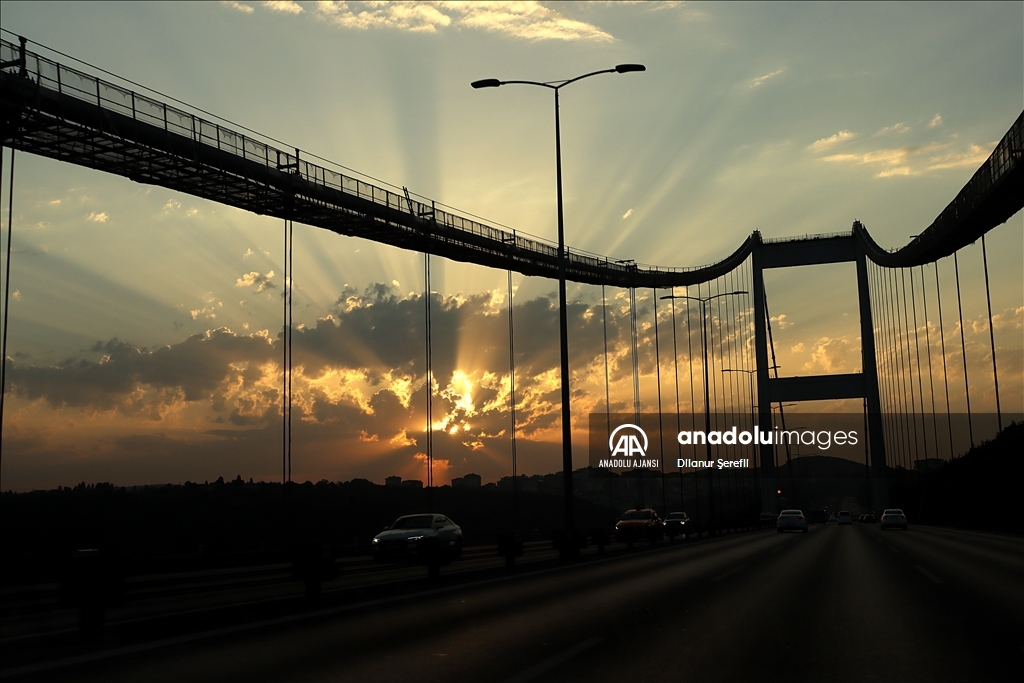 İstanbul'da gündoğumu Fatih Sultan Mehmet (FSM) Köprüsü ile birlikte görüntülendi. ( Dilanur Şerefli - Anadolu Ajansı )Dilanur Şerefli