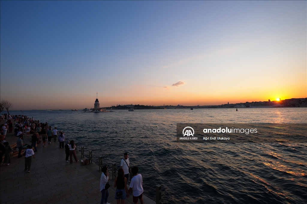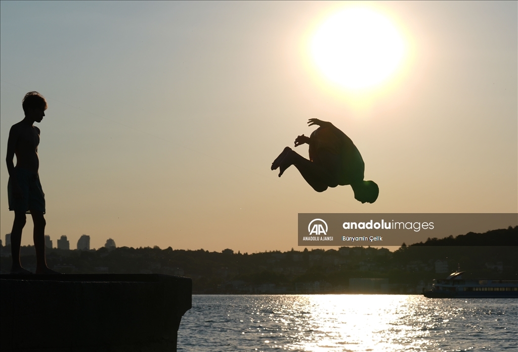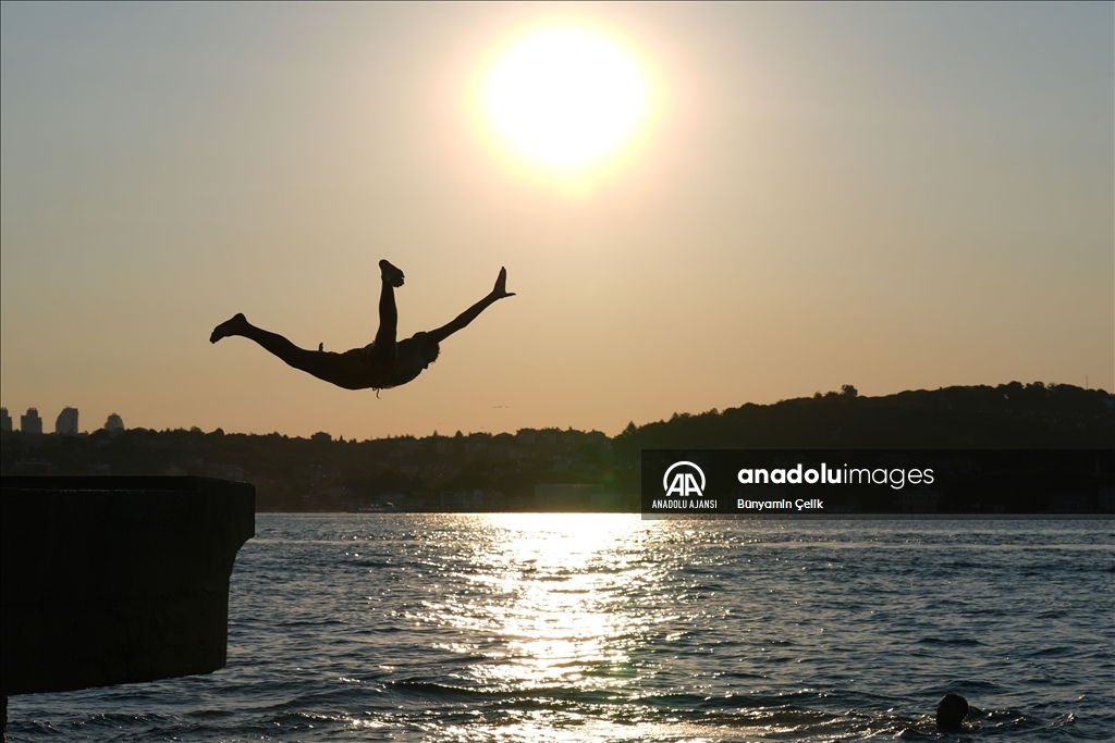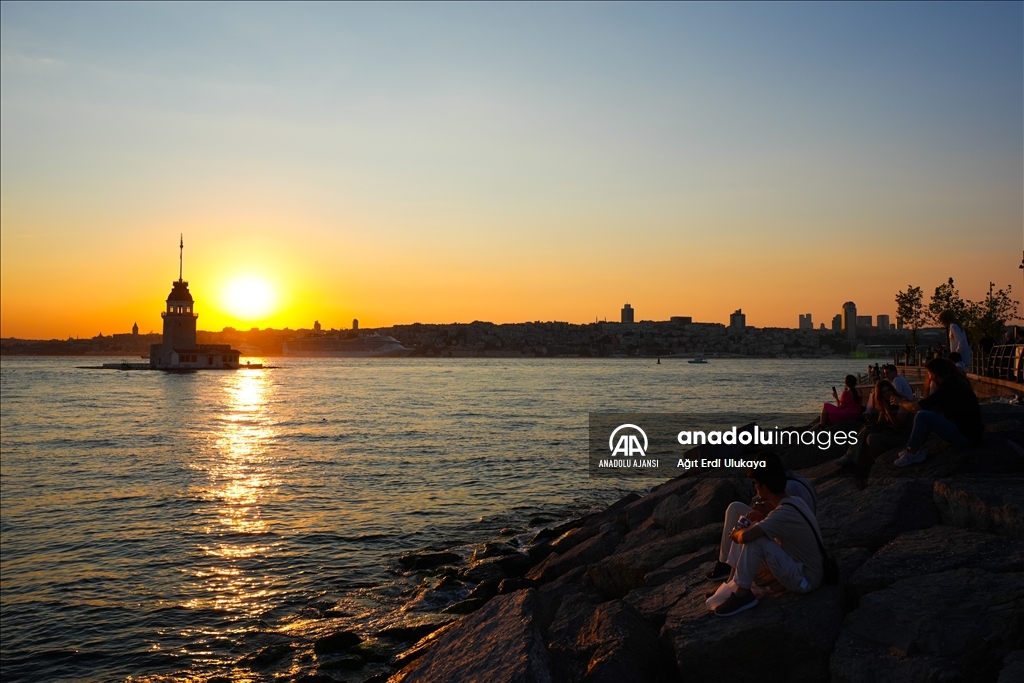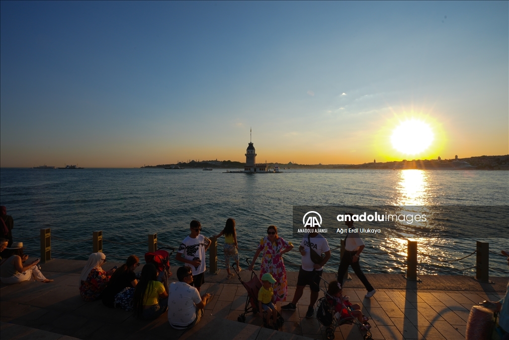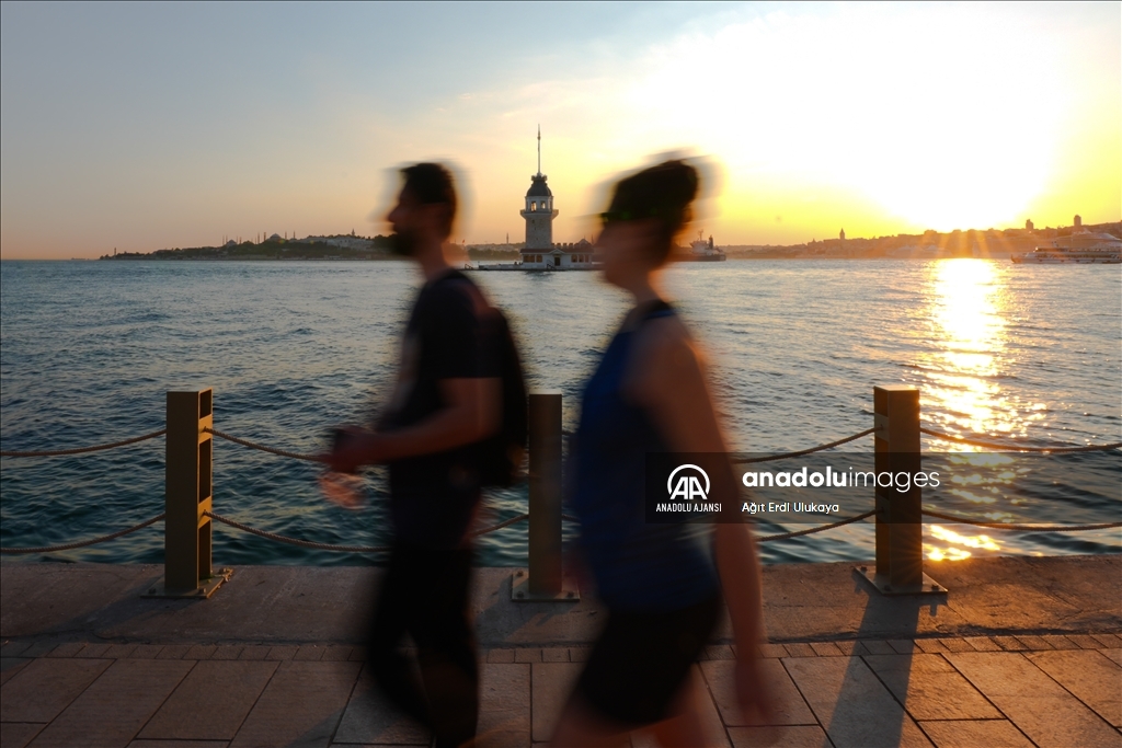 İstanbul'da etkisini gösteren sıcak havadan bunalan vatandaşlar, Üsküdar Salacak Sahili'nde vakit geçirdi. (Ağıt Erdi Ulukaya - Anadolu Ajansı)Ağıt Erdi Ulukaya