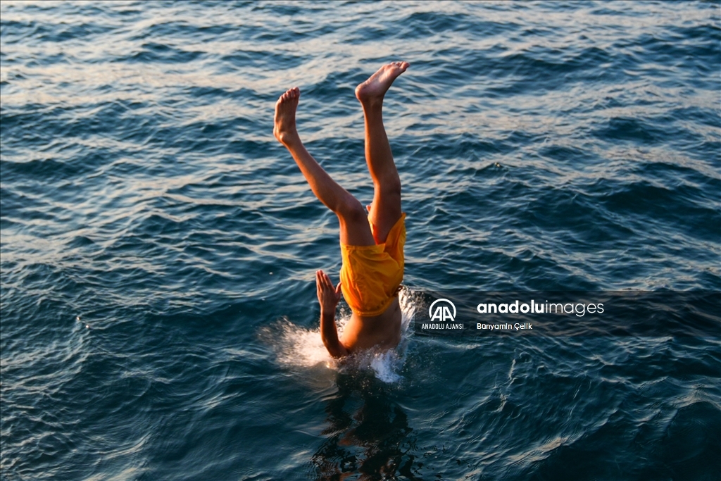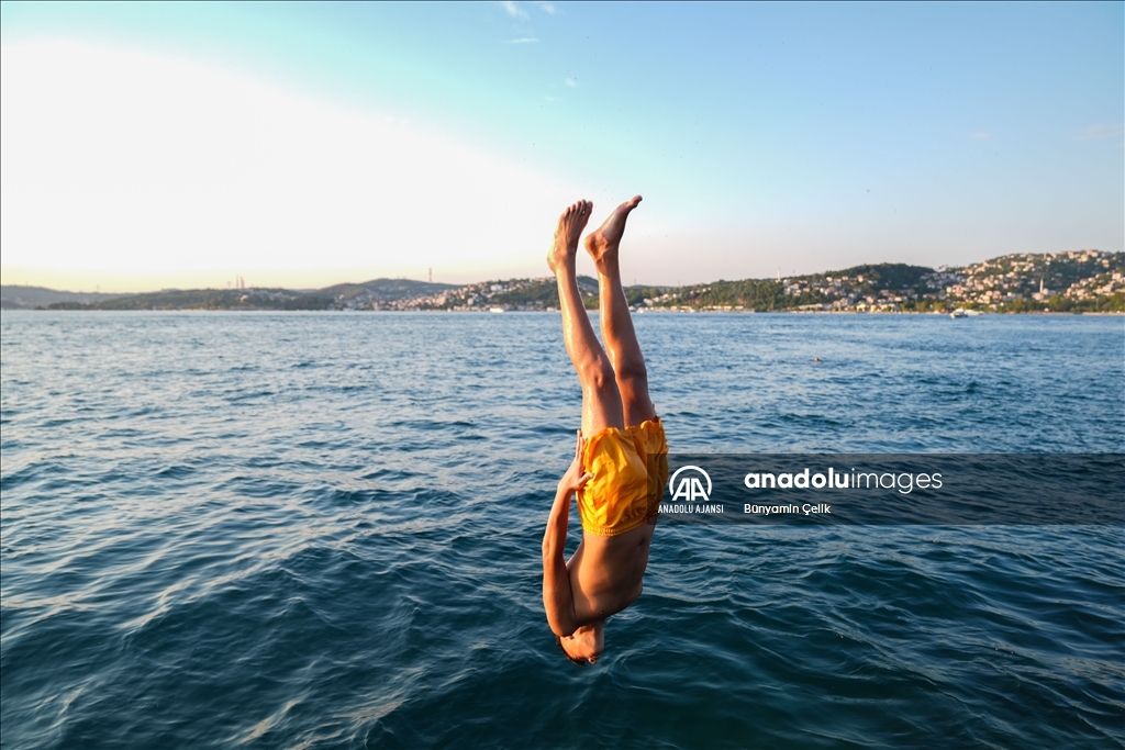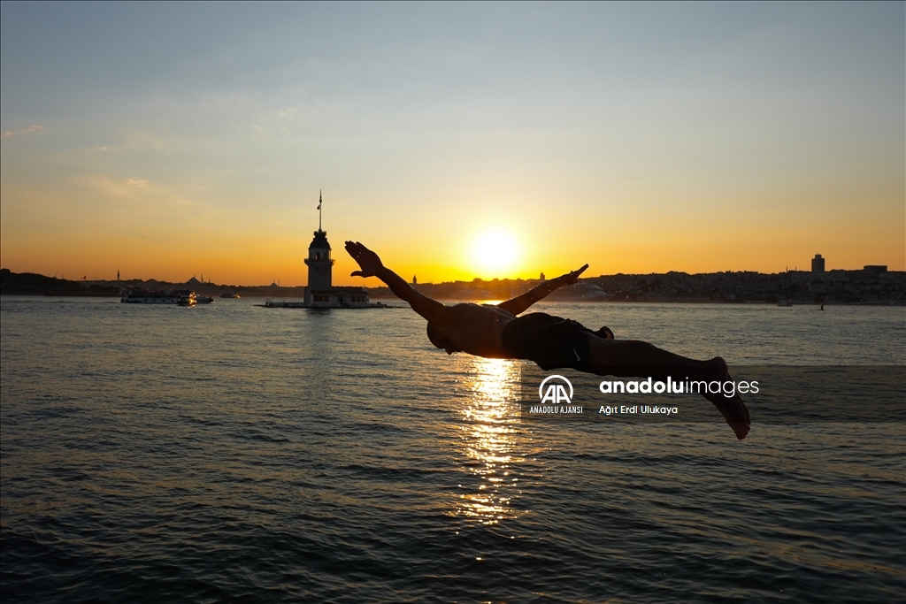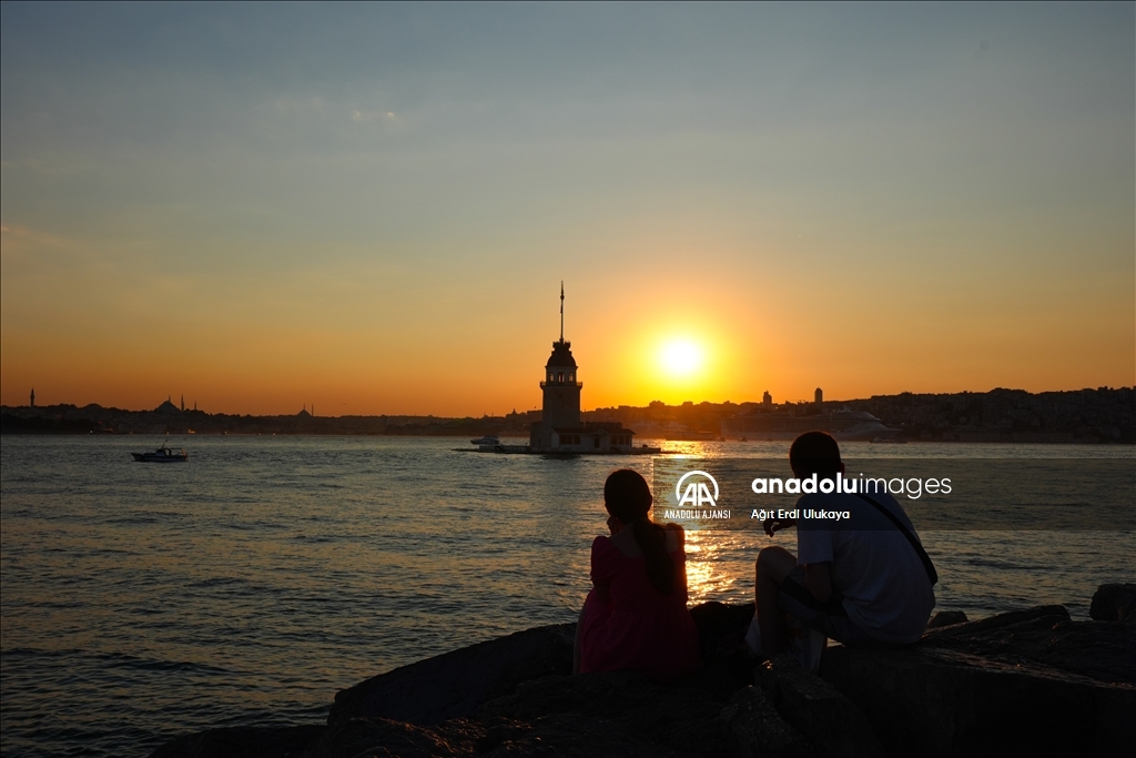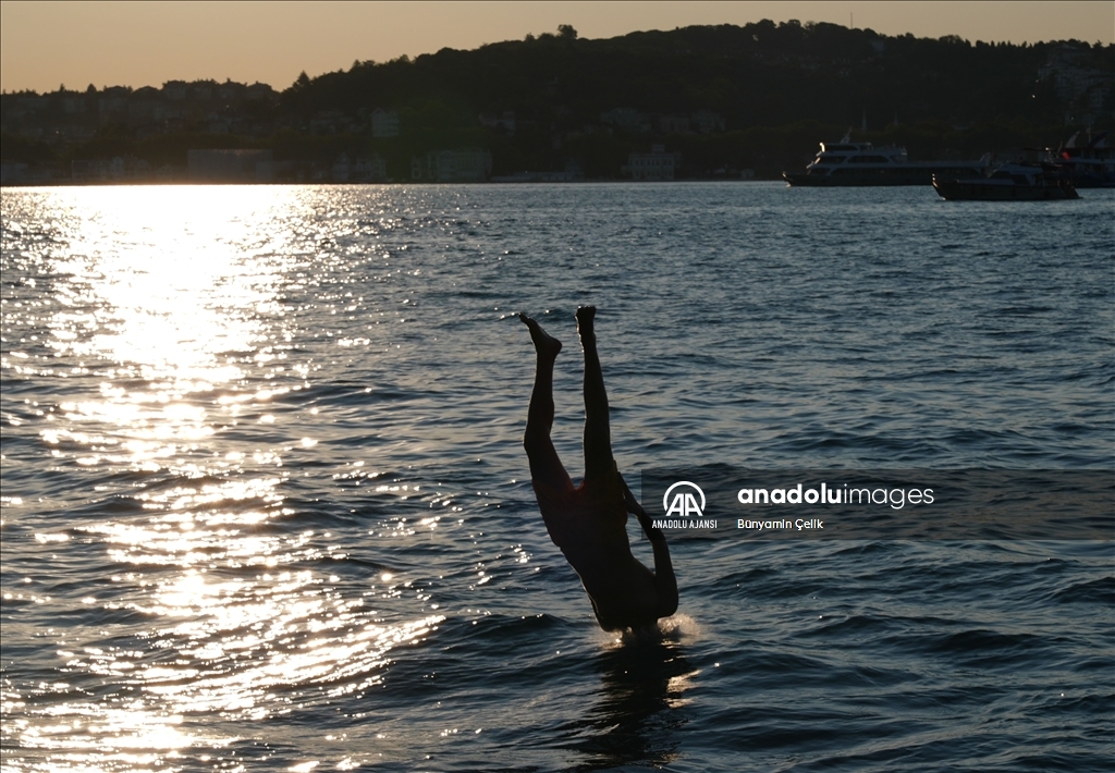 İstanbul'da etkisini gösteren sıcak havadan bunalan vatandaşlar, Üsküdar Salacak Sahili'nde vakit geçirdi. (Ağıt Erdi Ulukaya - Anadolu Ajansı)Ağıt Erdi Ulukaya