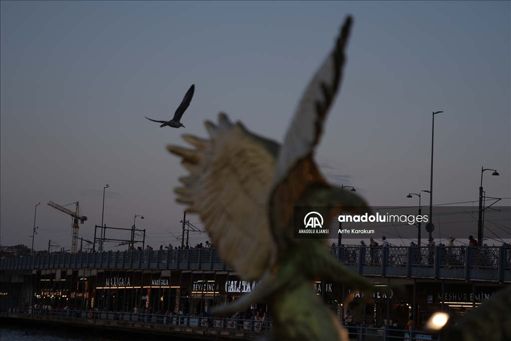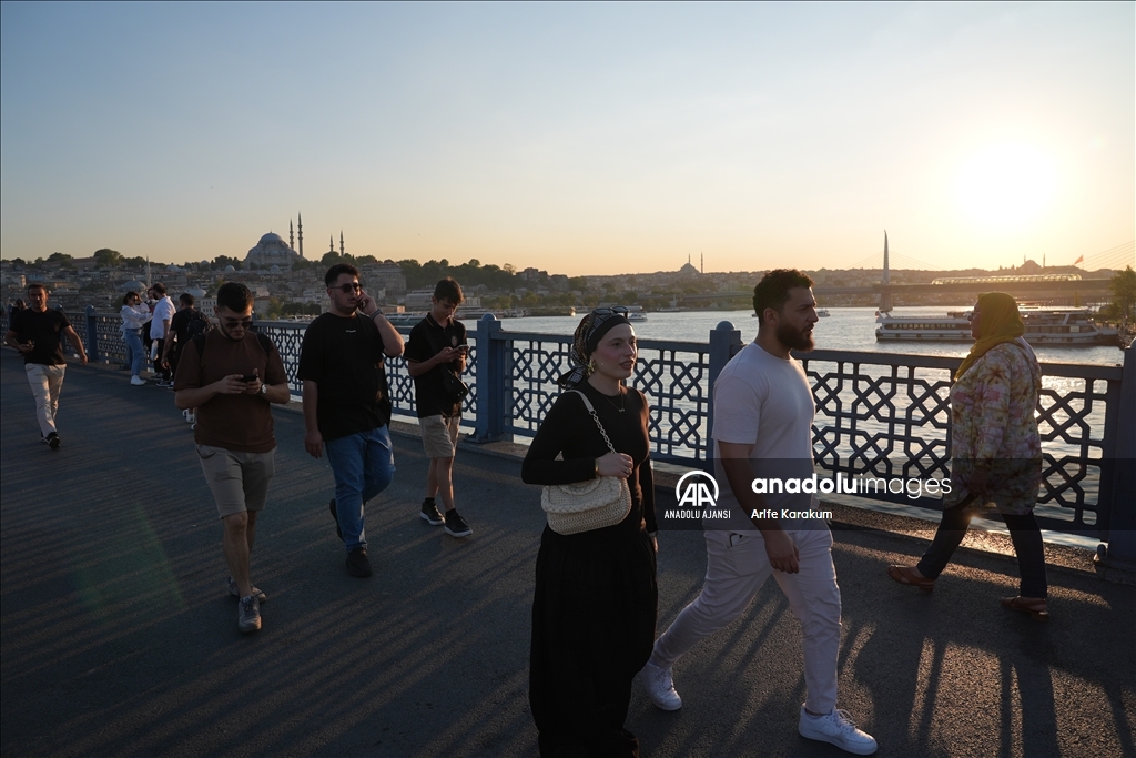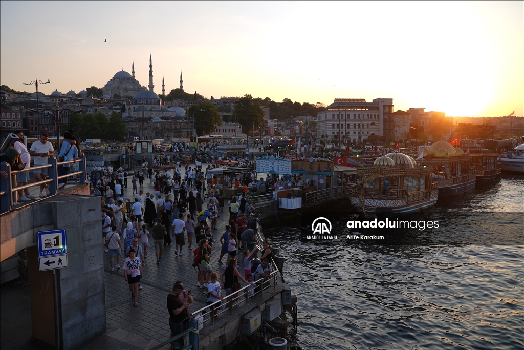 İstanbul'da etkisini gösteren sıcak havadan bunalan vatandaşlar, Eminönü Sahili ve çevresinde vakit geçirdi. (Arife Karakum - Anadolu Ajansı)Arife Karakum