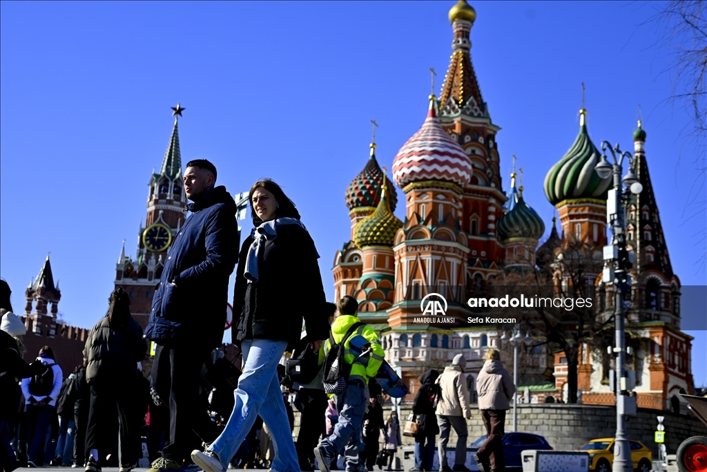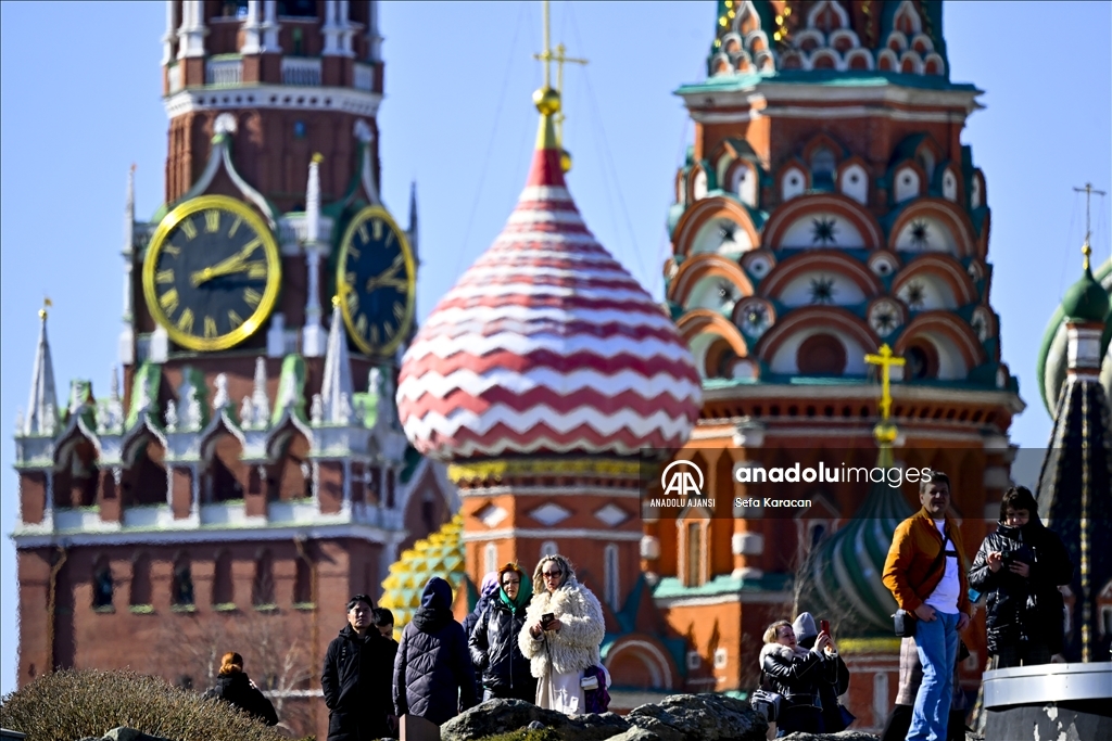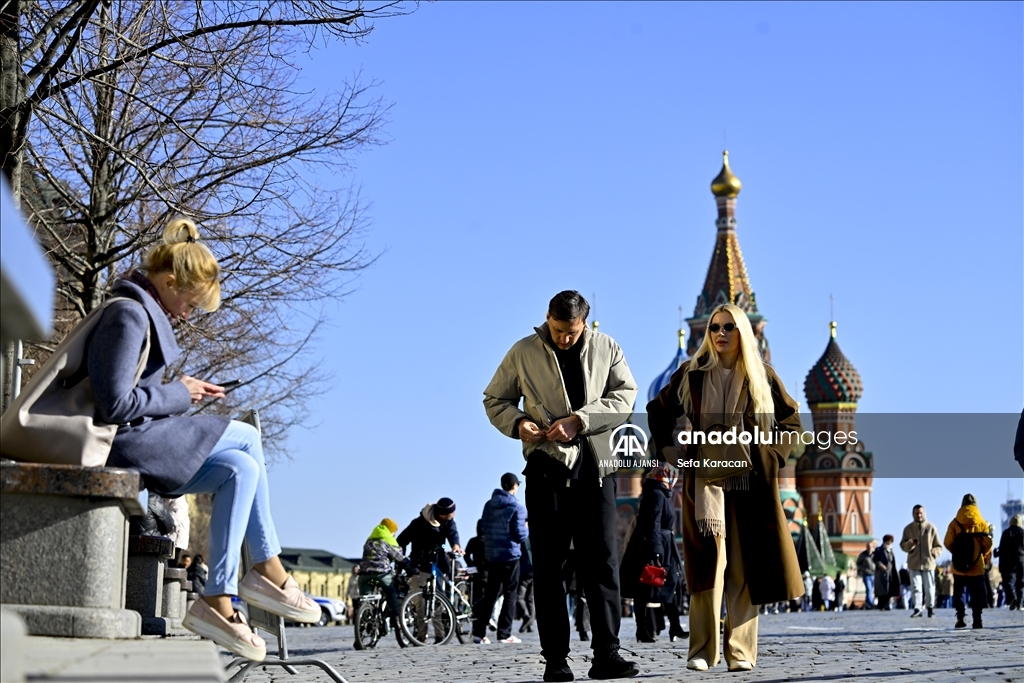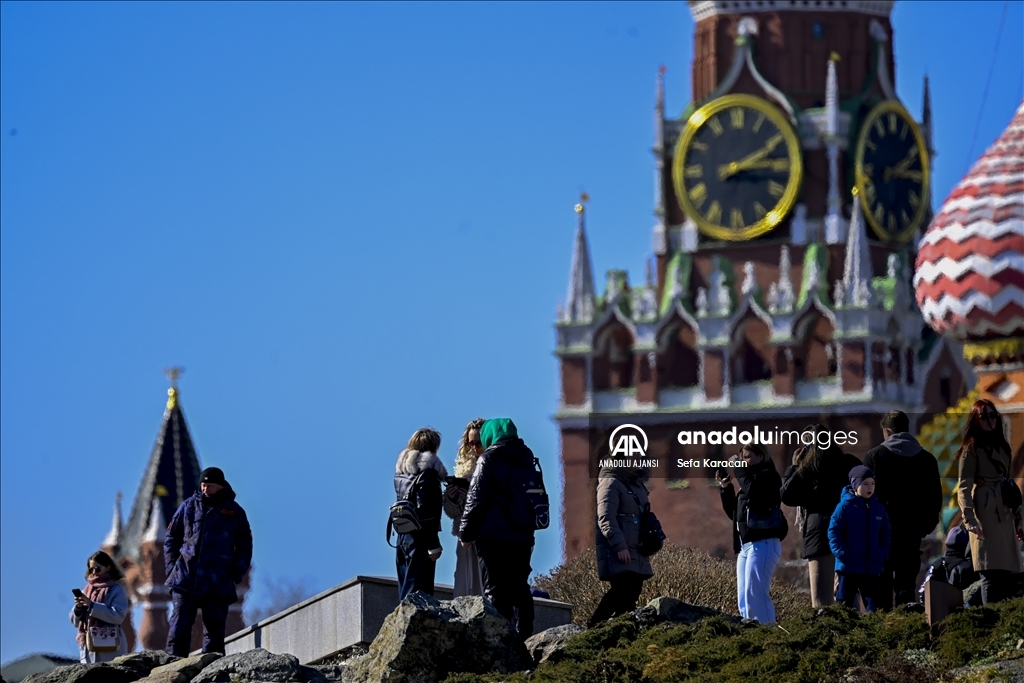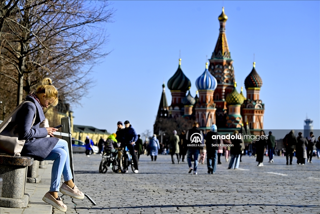 Rusya’nın başkenti Moskova’da bahar mevsimin gelmesiyle hava sıcaklığının artmasını fırsat bilen vatandaşlar, tarihi Kızıl Meydan ve çevresinde yürüyüş yaptı. ( Sefa Karacan - Anadolu Ajansı )Sefa Karacan