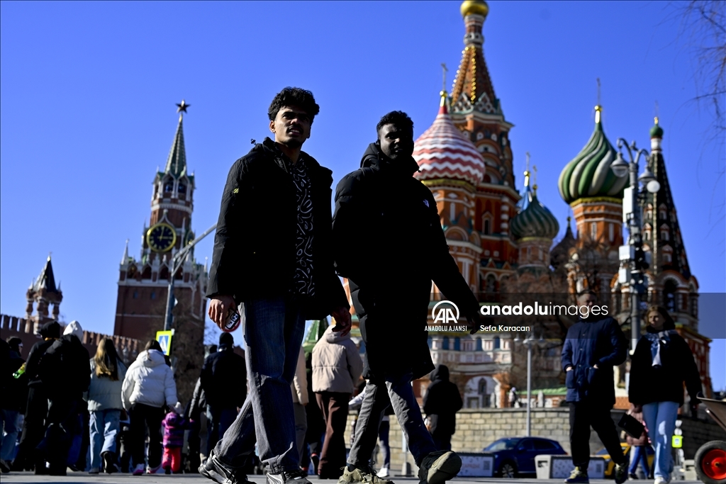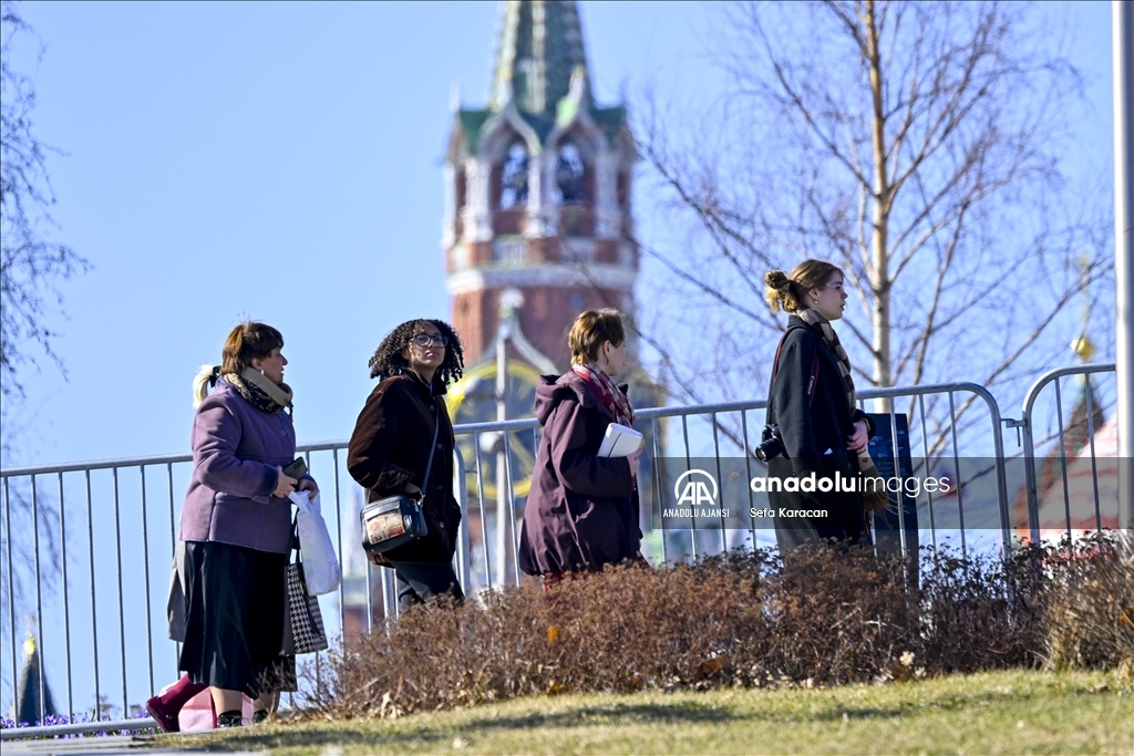 Rusya’nın başkenti Moskova’da bahar mevsimin gelmesiyle hava sıcaklığının artmasını fırsat bilen vatandaşlar, tarihi Kızıl Meydan ve çevresinde yürüyüş yaptı.