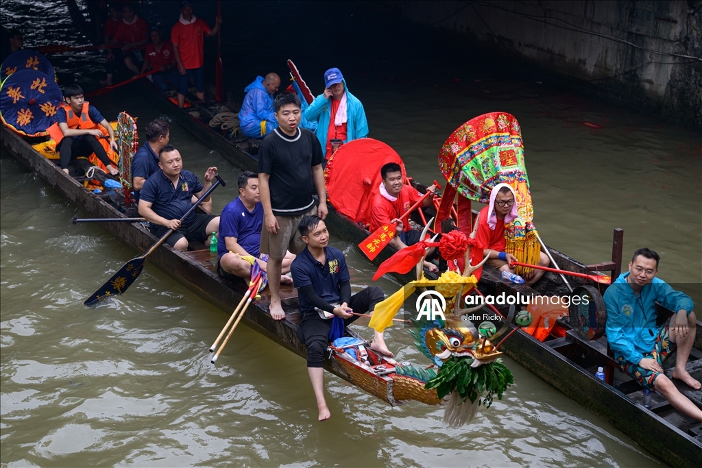 Çin'deki dört geleneksel festivalden biri olan Ejderha Kayığı Festivali'nde halk, ibadet ve dua ederken bir yandan da kutlama yapıyor.