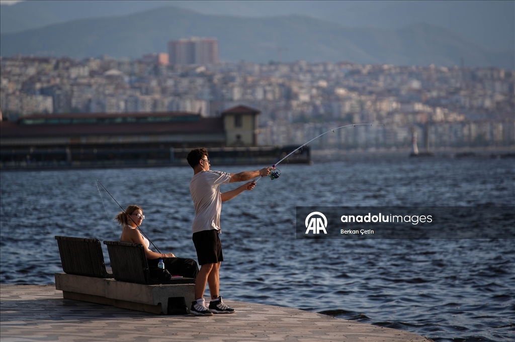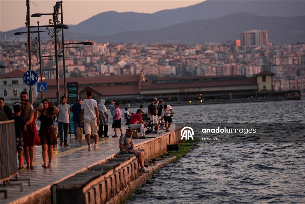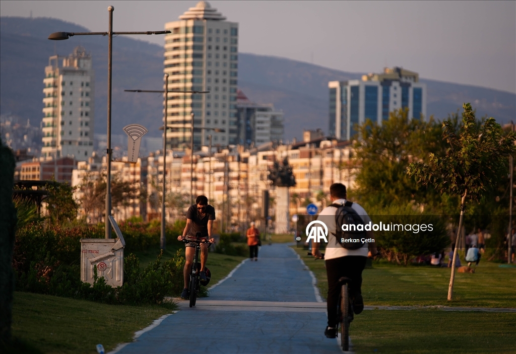 İzmir'de güzel havayı fırsat bilen vatandaşlar, Kordon Boyu'nda vakit geçirdi.