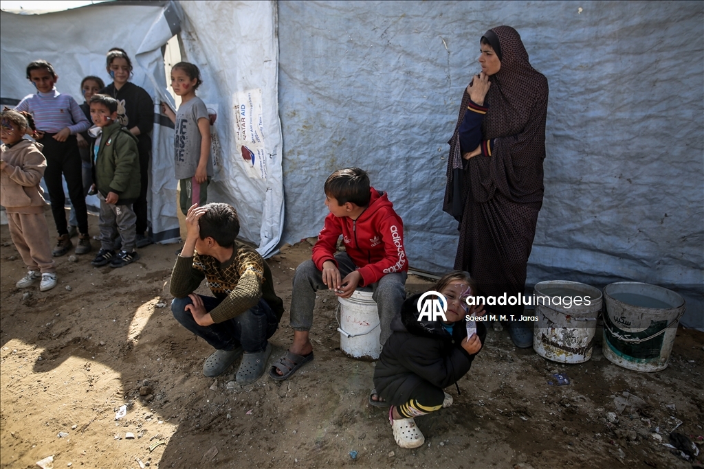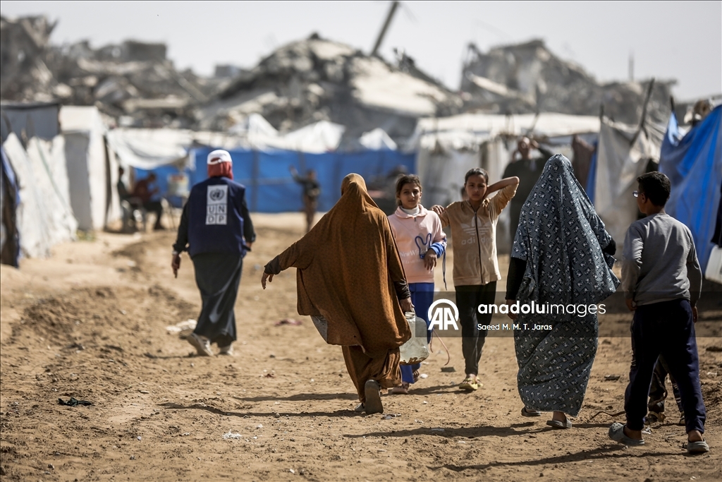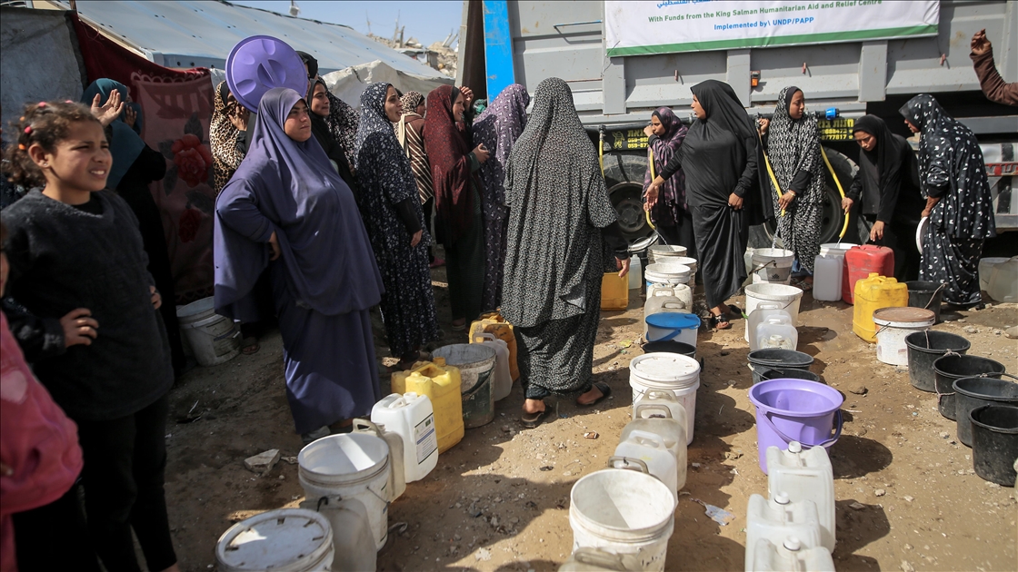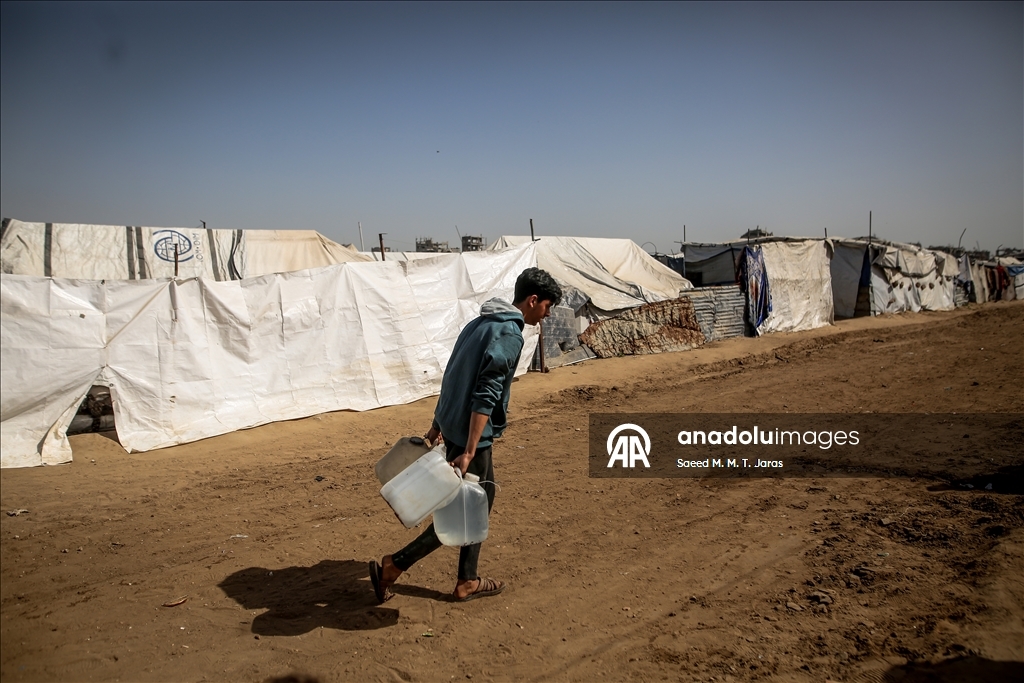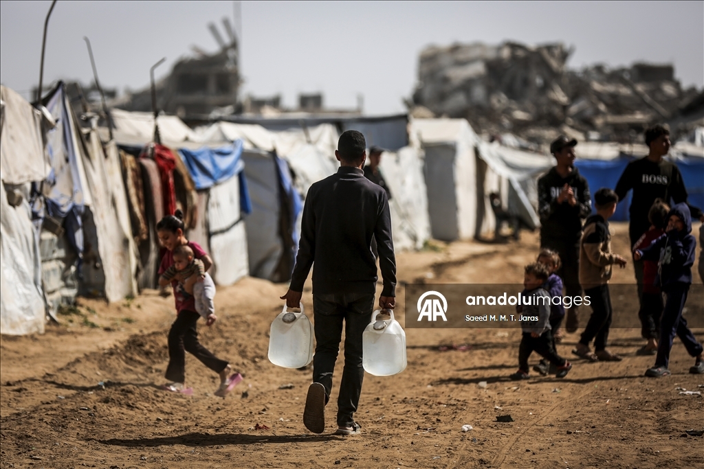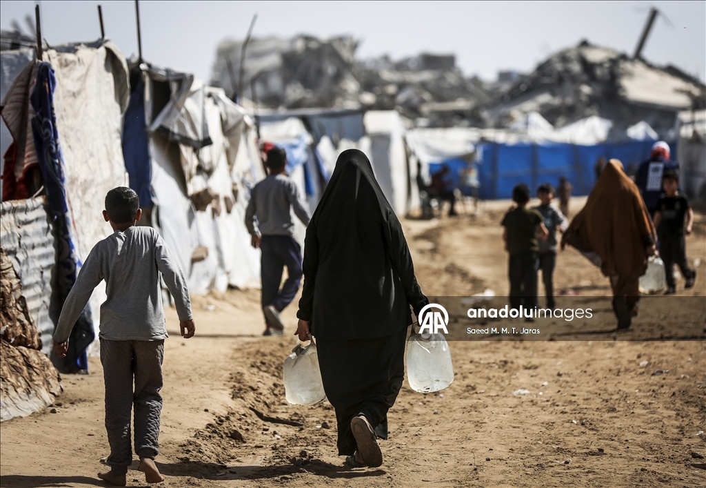 İsrail saldırıları sonucu altyapının ağır hasar görmesi sebebiyle su krizinin yaşandığı Gazze Şeridi'nin kuzeyindeki Gazze kentinde yaşayan Filistinliler, tankerlerin dağıttığı suları bidonlara doldurarak yaşam alanlarına taşıdı. ( Saeed M. M. T. Jaras - Anadolu Ajansı )