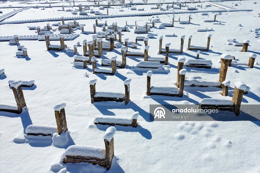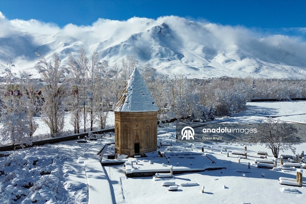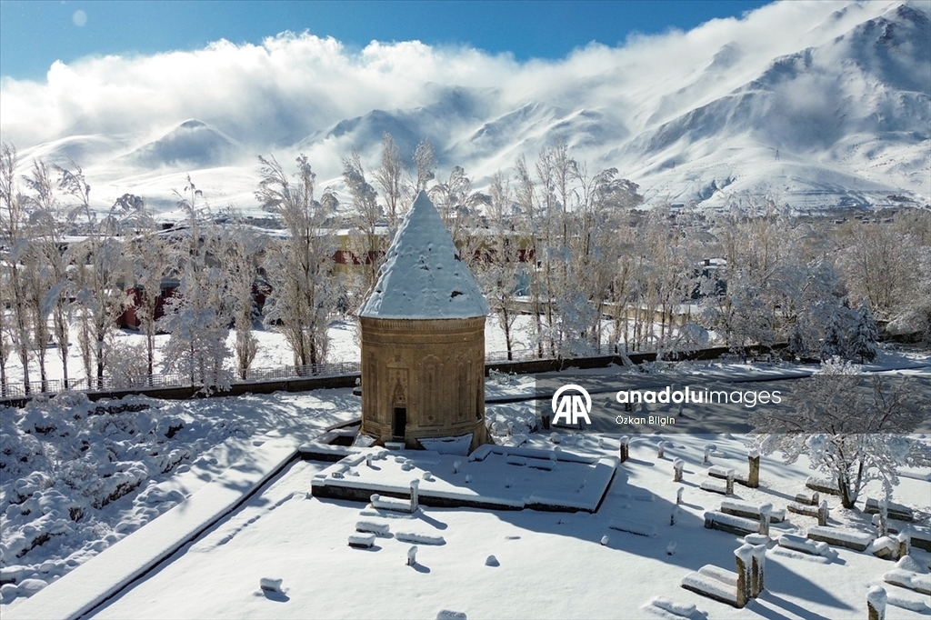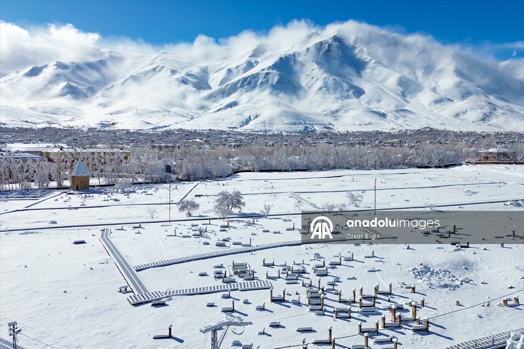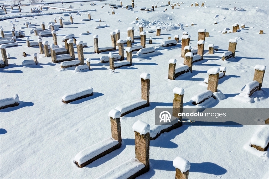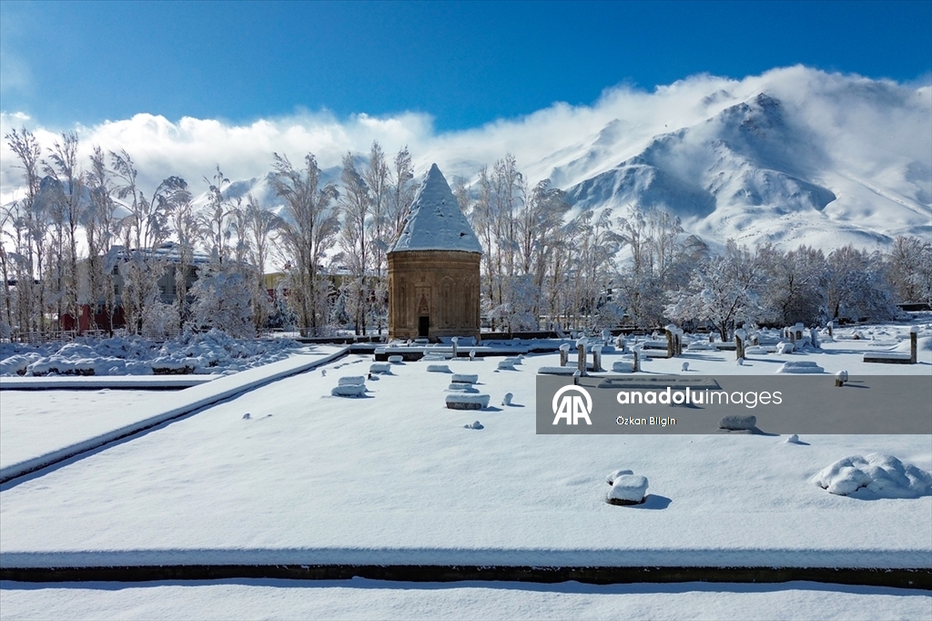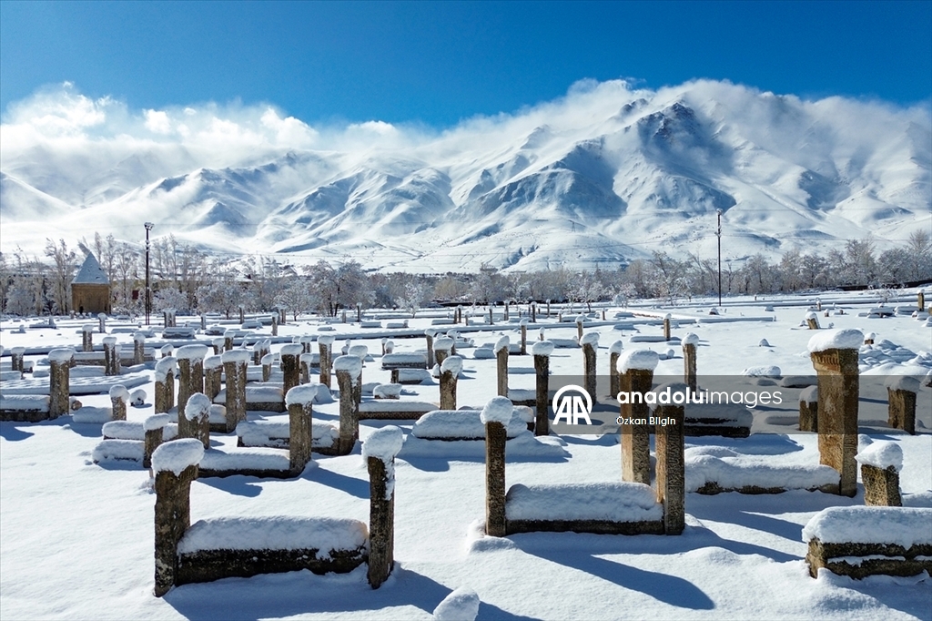 Van'daki Selçuklu Mezarlığı karla kaplandı