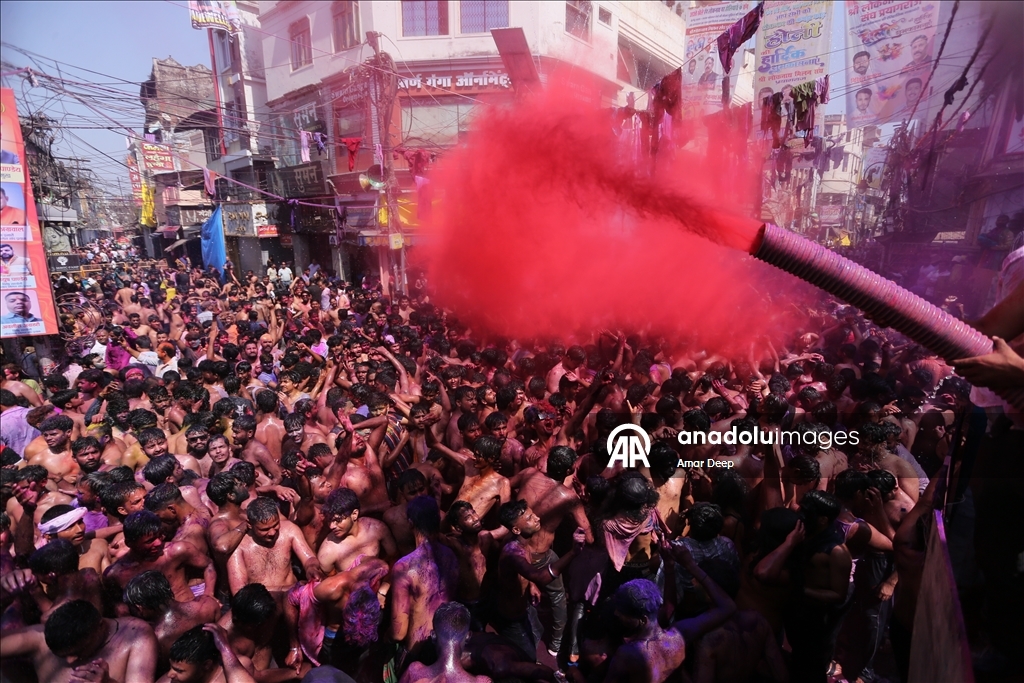 Hindistan'ın Prayagraj kentindeki hindular, Hint kültüründe baharın gelişini simgeleyen renklerin festivali olarak bilinen "Holi Festivali"ni kutladı.