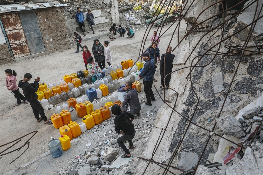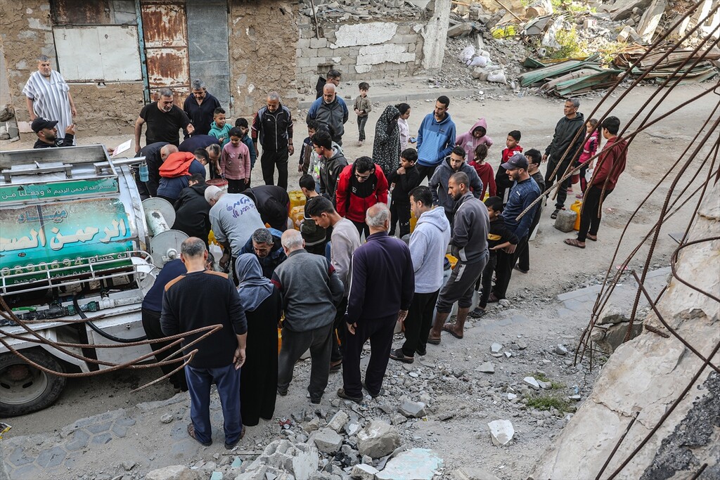 İsrail'in Gazze Şeridi'ne yönelik saldırıları sonucu altyapı tamamen tahrip oldu. Gazzeliler, su ihtiyaçlarını dağıtım yapan tankerlerden karşılıyor. Gazze'nin Nuseyrat Kampı'ndaki Filistinliler, bidonlarını su doldurmak için kuyrukta bekledi.
