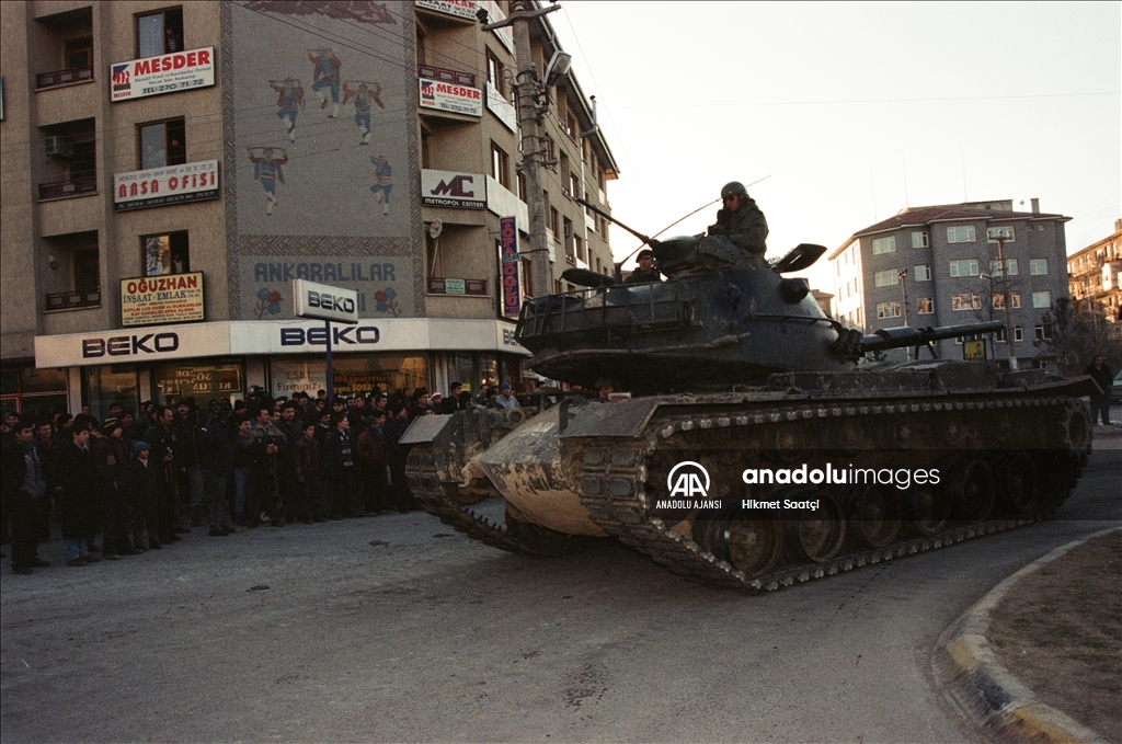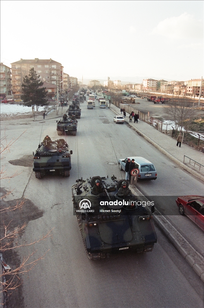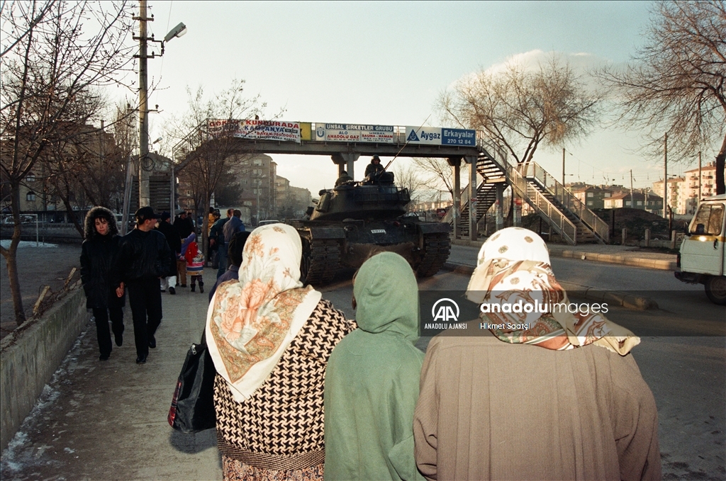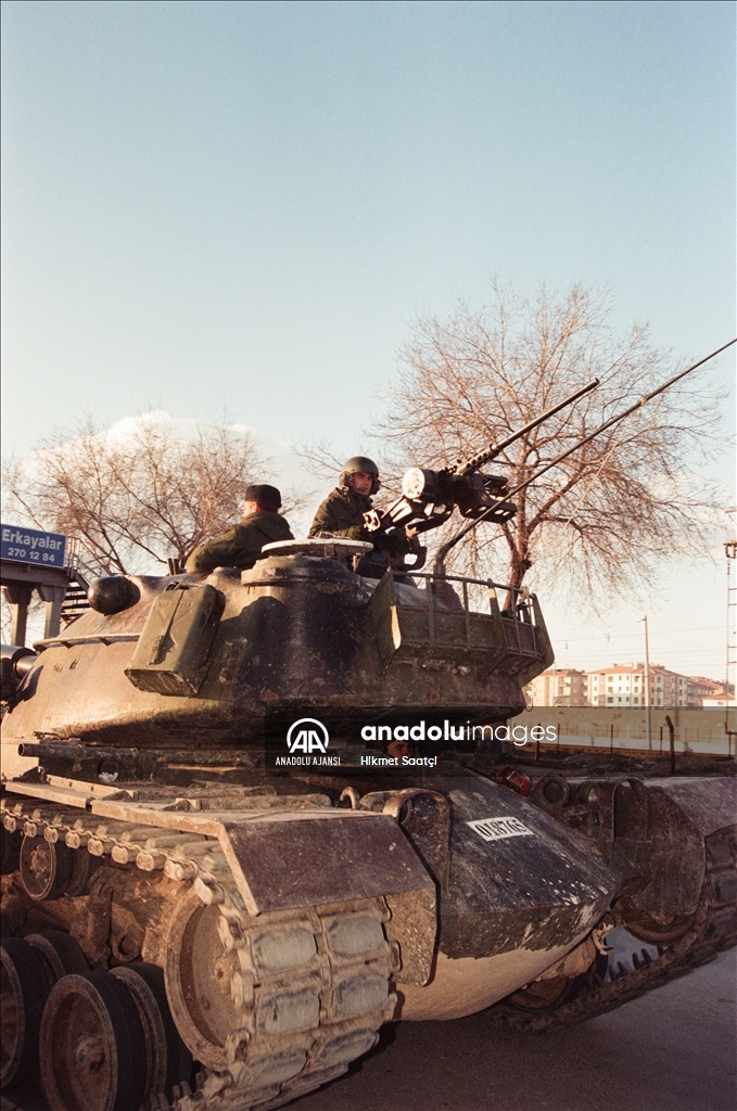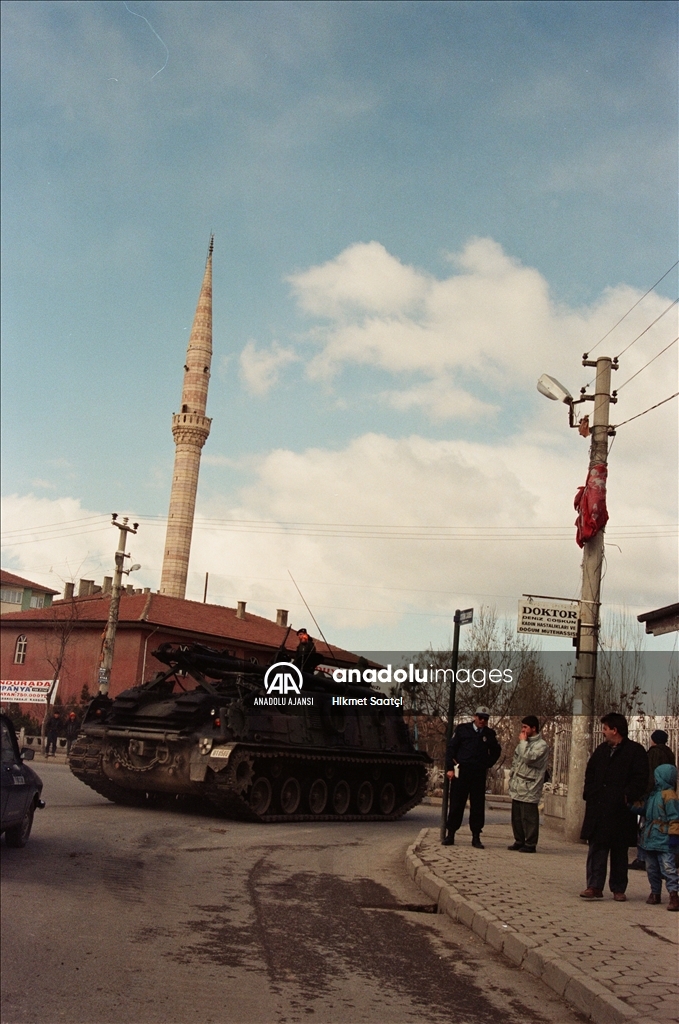 Türk siyasi tarihine "Postmodern darbe" olarak geçen 28 Şubat 1997'deki Milli Güvenlik Kurulu (MGK) toplantısının üzerinden 26 yıl geçti. Etimesgut Zırhlı Birlikler Okuluna ait tanklar 4 Şubat 1997'de Sincan'da motorlu yürüyüş yaparak Akıncı Üssü'ne gitmişti. (Arşiv) ( Hikmet Saatçi - Anadolu Ajansı )Hikmet Saatçi