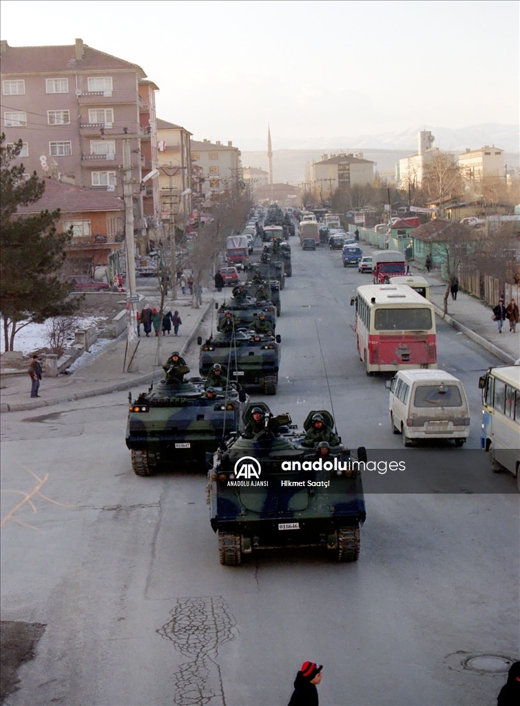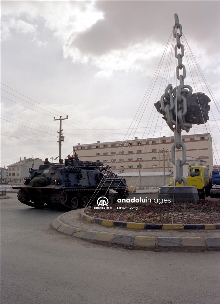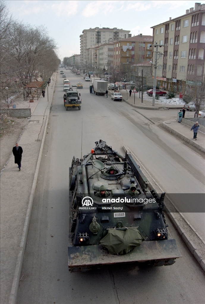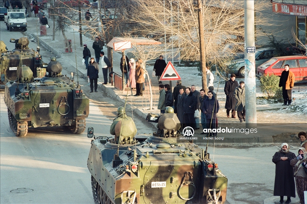 Türk siyasi tarihine "Postmodern darbe" olarak geçen 28 Şubat 1997'deki Milli Güvenlik Kurulu (MGK) toplantısının üzerinden 26 yıl geçti. Etimesgut Zırhlı Birlikler Okuluna ait tanklar 4 Şubat 1997'de Sincan'da motorlu yürüyüş yaparak Akıncı Üssü'ne gitmişti. (Arşiv) ( Hikmet Saatçi - Anadolu Ajansı )Hikmet Saatçi