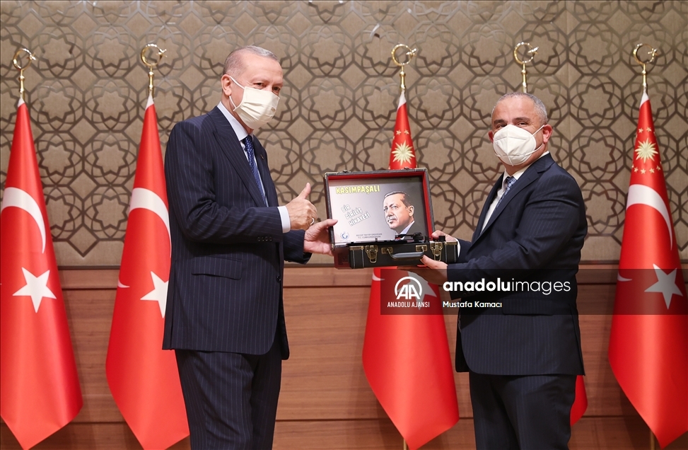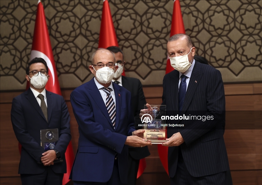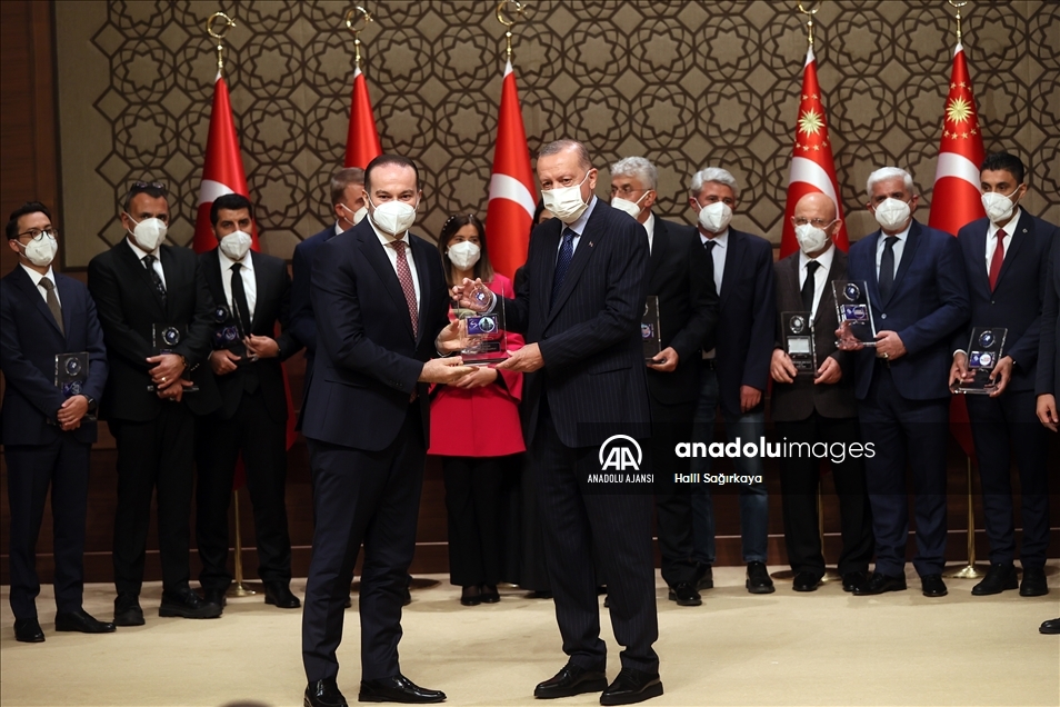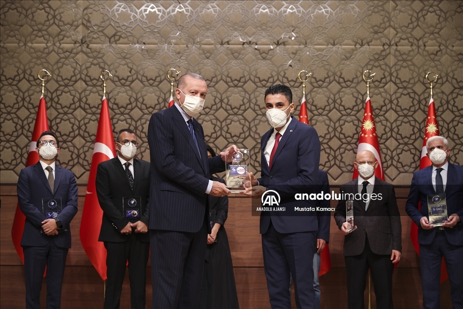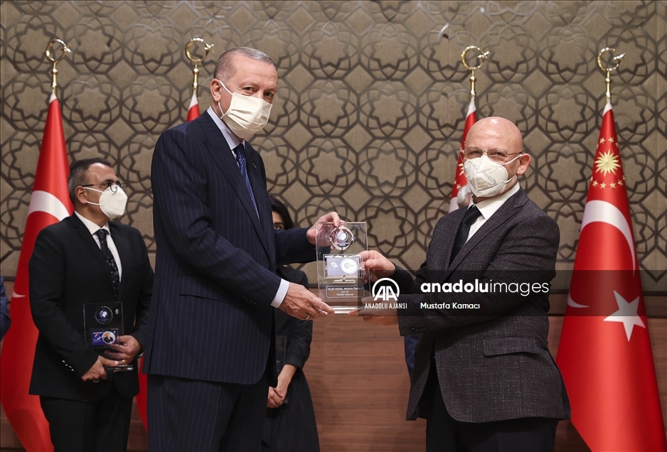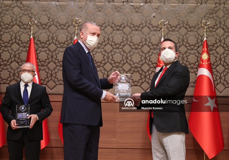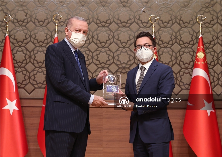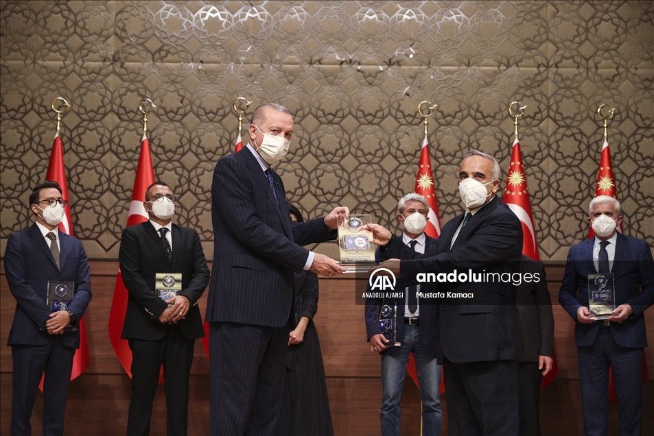 Cumhurbaşkanı Recep Tayyip Erdoğan, Cumhurbaşkanlığı Külliyesi'nde "6. Anadolu Medya Ödülleri" programına katıldı. Cumhurbaşkanı Erdoğan, çeşitli kategorilerde ödüle layık görülenlere ödüllerini verdi. ( Mustafa Kamacı - Anadolu Ajansı )Mustafa Kamacı