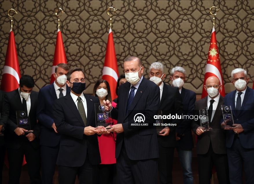6. Anadolu Medya Ödülleri Töreni, Cumhurbaşkanı Recep Tayyip Erdoğan’ın katılımıyla Cumhurbaşkanlığı Külliyesi’nde gerçekleştirildi. Cumhurbaşkanlığı İletişim Başkanı Fahrettin Altun'a ödülünü Cumhurbaşkanı Erdoğan verdi. ( Halil Sağırkaya - Anadolu Ajansı )Halil Sağırkaya