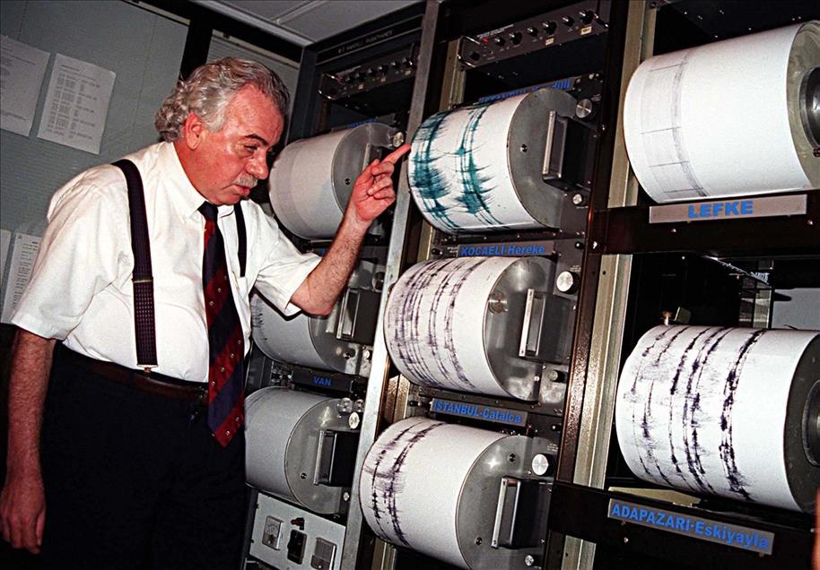 16 yıl önce, 17 Ağustos 1999 sabah 03:02'de merkez üssü Kocaeli’nin Gölcük ilçesi olan Marmara Depremi gerçekleşti. Ankara'dan İzmir'e kadar geniş bir alanda hissedilen deprem sonrası resmi raporlara göre 18 bin 373 kişi öldü, 23 bin 781 kişi yaralandı ve 505 kişi de sakat kaldı. Büyük can ve mal kaybına neden olan depremde 285 bin 211 ev ile 42 bin 902 iş yeri büyük hasar gördü. Türkiye tarihini derinden etkileyen ‘’Marmara Depremi’’nde hayatını kaybedenler için her yıl anma etkinlikleri düzenleniyor. Fotoğrafta Boğaziçi Üniversitesi Kandilli Rasathanesi Deprem araştırma Enstitüsü Müdürü Porf. Dr. Ahmet Mete Işıkara depremden sonra meydana gelen artçı sarsıntılar hakkında açıklama yaparken görülüyor. (Arşiv) (Kerim Gülbetekin - Anadolu Ajansı)Kerim Gülbetekin