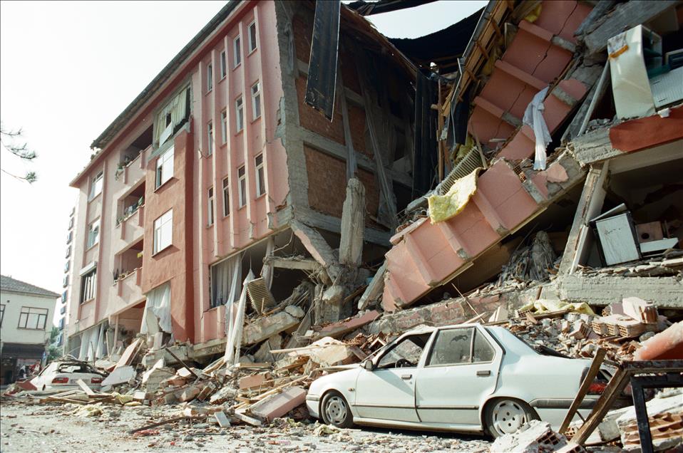 16 yıl önce, 17 Ağustos 1999 sabah 03:02'de merkez üssü Kocaeli’nin Gölcük ilçesi olan Marmara Depremi gerçekleşti. Ankara'dan İzmir'e kadar geniş bir alanda hissedilen deprem sonrası resmi raporlara göre 18 bin 373 kişi öldü, 23 bin 781 kişi yaralandı ve 505 kişi de sakat kaldı. Büyük can ve mal kaybına neden olan depremde 285 bin 211 ev ile 42 bin 902 iş yeri büyük hasar gördü. Türkiye tarihini derinden etkileyen ‘’Marmara Depremi’’nde hayatını kaybedenler için her yıl anma etkinlikleri düzenleniyor. Deprem Kocaeli'nin Gölcük ilçesinde ağır hasara neden olmuştu. (Arşiv) (AA Arşivi - Anadolu Ajansı)AA Arşivi
