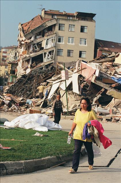 16 yıl önce, 17 Ağustos 1999 sabah 03:02'de merkez üssü Kocaeli’nin Gölcük ilçesi olan Marmara Depremi gerçekleşti. Ankara'dan İzmir'e kadar geniş bir alanda hissedilen deprem sonrası resmi raporlara göre 18 bin 373 kişi öldü, 23 bin 781 kişi yaralandı ve 505 kişi de sakat kaldı. Büyük can ve mal kaybına neden olan depremde 285 bin 211 ev ile 42 bin 902 iş yeri büyük hasar gördü. Türkiye tarihini derinden etkileyen ‘’Marmara Depremi’’nde hayatını kaybedenler için her yıl anma etkinlikleri düzenleniyor. İstanbul'da Sefaköy'de çöken 6 katlı apartmanın enkazında boynu yan yatmış halde objektiflere yansıyan Ömür Kınay, yaralı halde kurtarılmıştı. (Arşiv) (Hasan Türkan - Anadolu Ajansı)Hasan Türkan