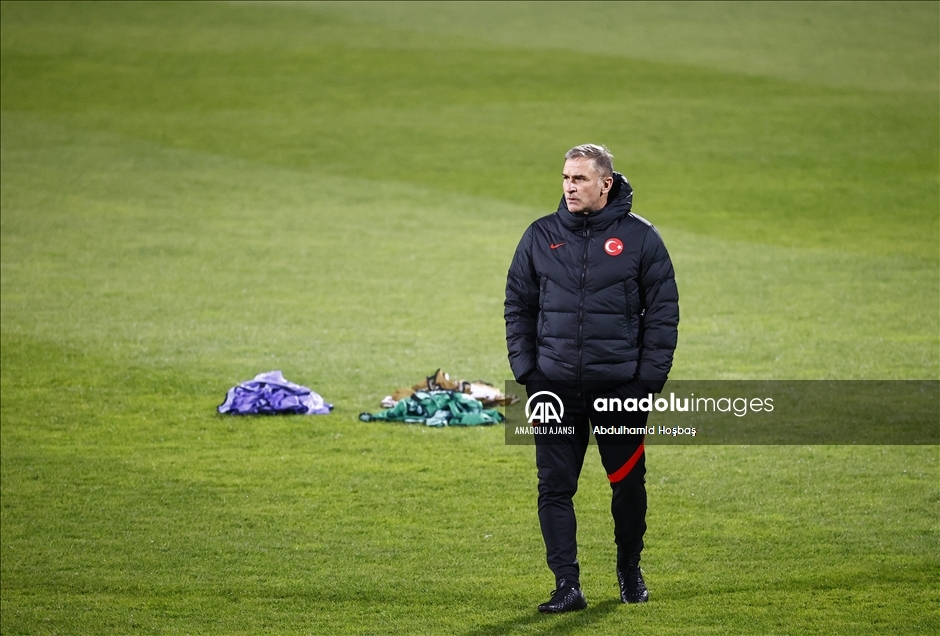 A Milli Futbol Takımı, 2022 FIFA Dünya Kupası Avrupa Elemeleri G Grubu'nda yarın deplasmanda Letonya ile yapacağı maçın hazırlıklarını tamamladı. Karşılaşmanın oynanacağı Daugava Stadı'nda teknik direktör Stefan Kuntz (fotoğrafta) yönetimindeki idmanın ilk 15 dakikası, basına açık gerçekleştirildi. ( Abdulhamid Hoşbaş - Anadolu Ajansı )Abdulhamid Hoşbaş