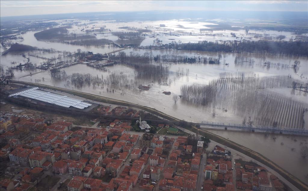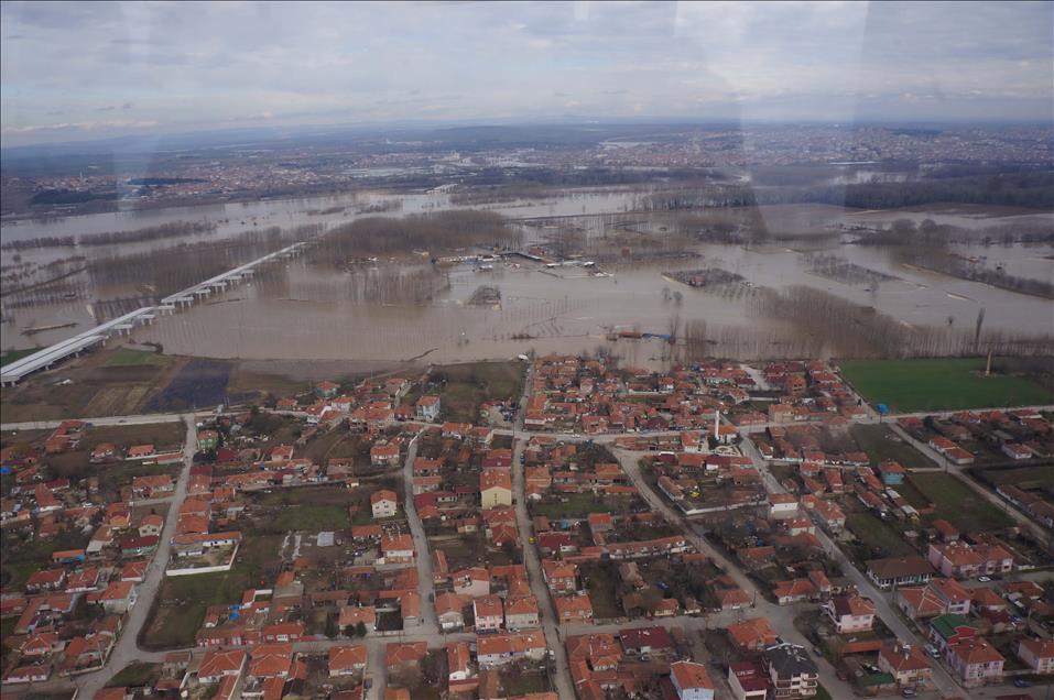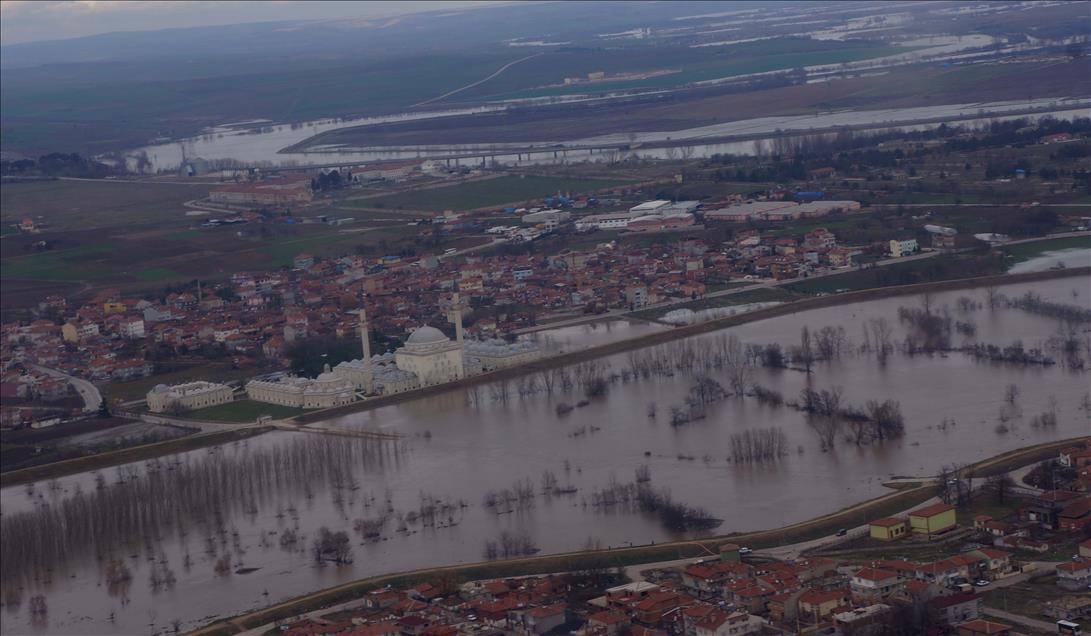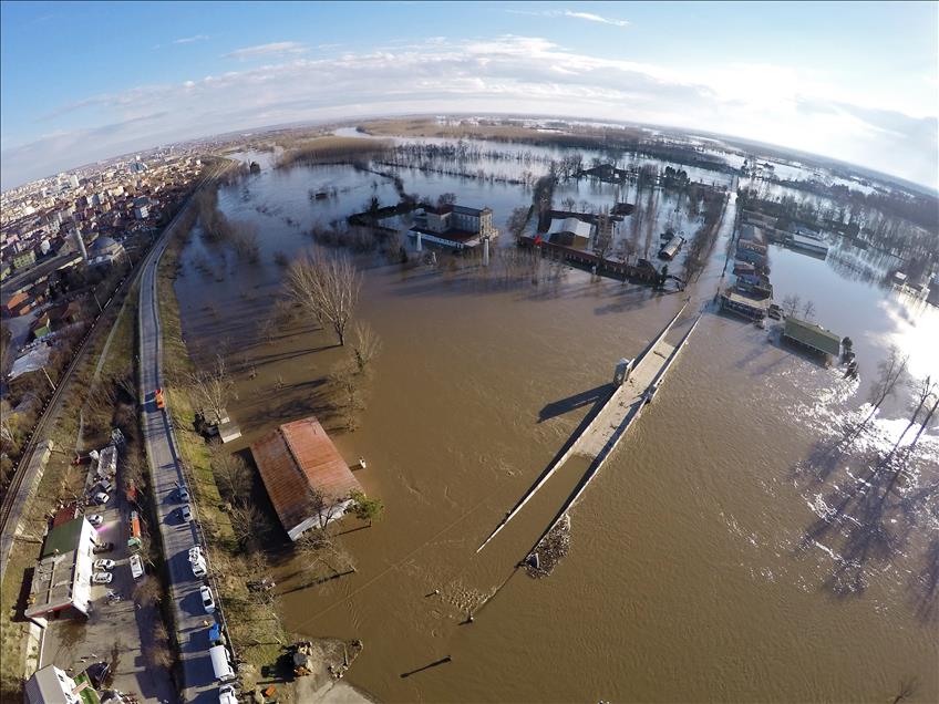 AA Edirne'deki taşkın felaketini havadan görüntüledi