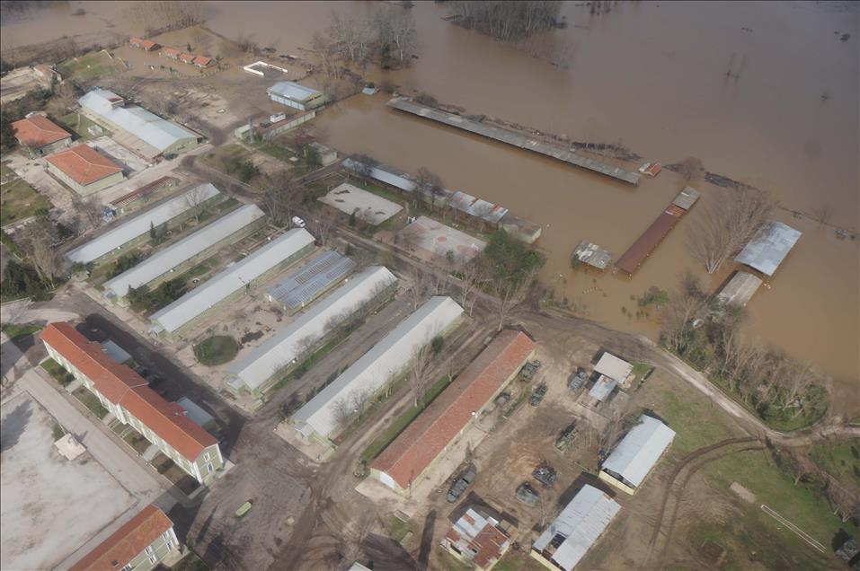 Edirne Valisi Dursun Ali Şahin ve 54. Mekanize Tugay Komutanı Tuğgeneral Hidayet Arı taşkını havadan inceledi. (Salih Baran - Anadolu Ajansı)Salih Baran