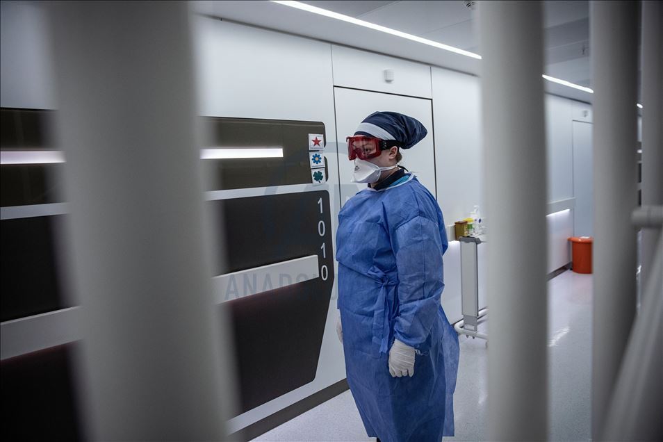 AA ekibi, özel bir hastanede Kovid-19'la mücadeleyi görüntüledi