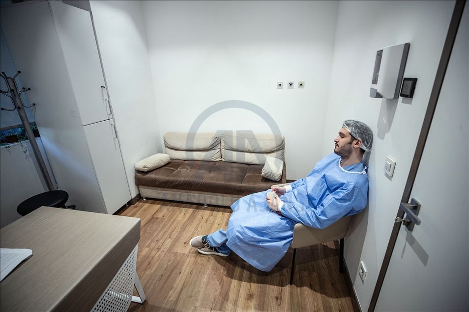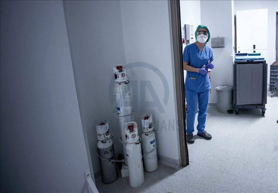 Anadolu Ajansı (AA) ekibi, İstanbul'da özel bir hastanede yeni tip koronavirüs (Kovid-19) tanısı alan hastalara uygulanan prosedürü ve tedavi süreciyle pandemiye karşı mücadele veren kahraman sağlık çalışanlarının bir gününü görüntüledi.
