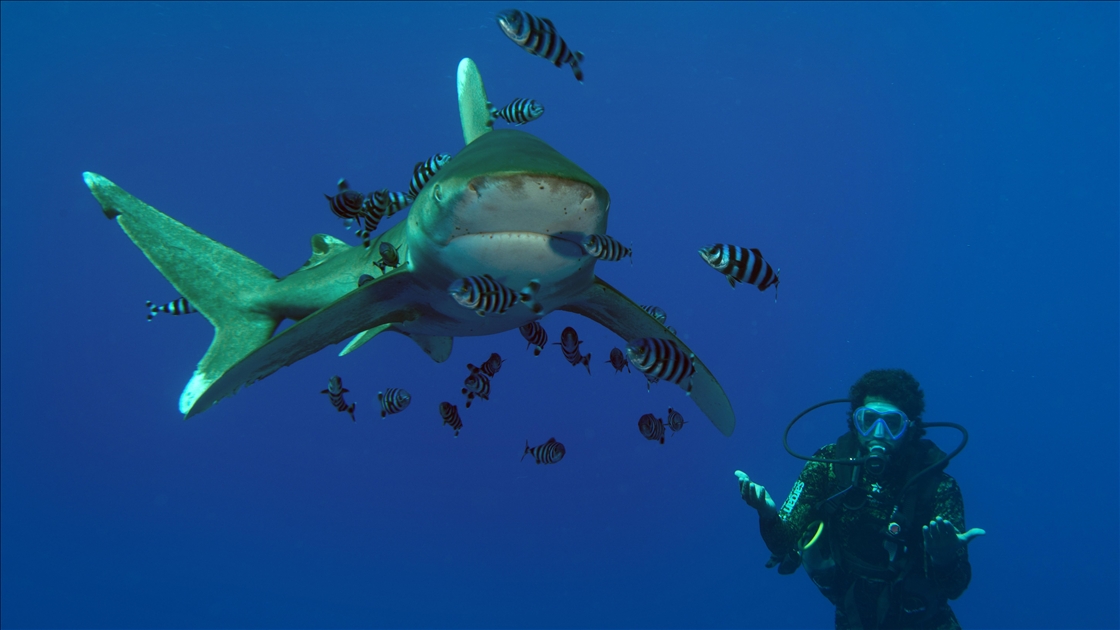 Anadolu Ajansı (AA) Su Altı Görüntü Yönetmeni ve Belgesel Yapımcısı Tahsin Ceylan, Kızıldeniz'de Marsa Alam bölgesindeki Elphinstone dalış noktasında köpekbalıklarının bulunduğu alanda dalış gerçekleştirdi.