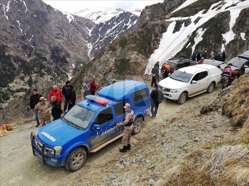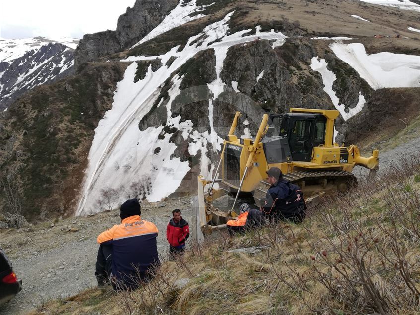 Bayburt-Trabzon arasında bulunan Soğanlı Dağı'ndaki yol açma çalışmalarını takip ederken dün Derebaşı Virajları'nda bastığı kar kütlesinin kopması sonucu uçuruma yuvarlanan AA Bayburt muhabiri Abdulkadir Nişancı'yı arama çalışmaları devam etti. ( Muhammet Çelik - Anadolu Ajansı )Muhammet Çelik