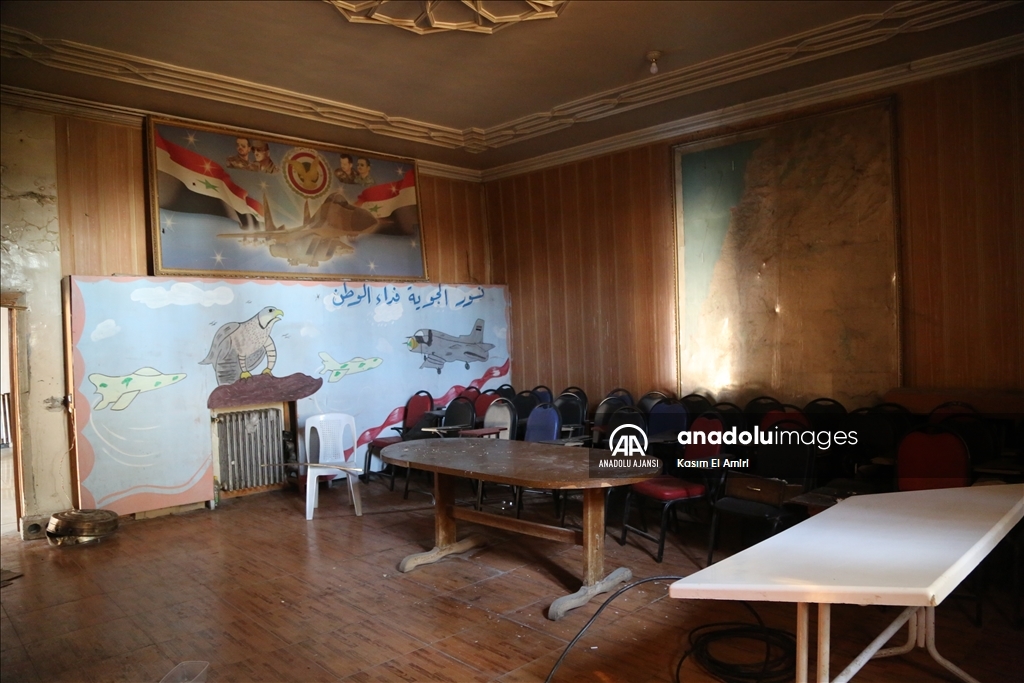Rejim askerlerinin gözetim kulesi olarak kullandığı düşünülen yapının da yer aldığı havaalanındaki ofislerde çeşitli resmi evrakların dağınık şekilde bırakıldığı görülüyor.Kasım El Amiri