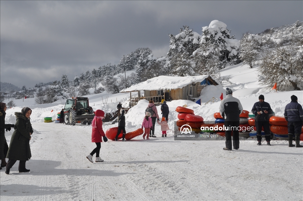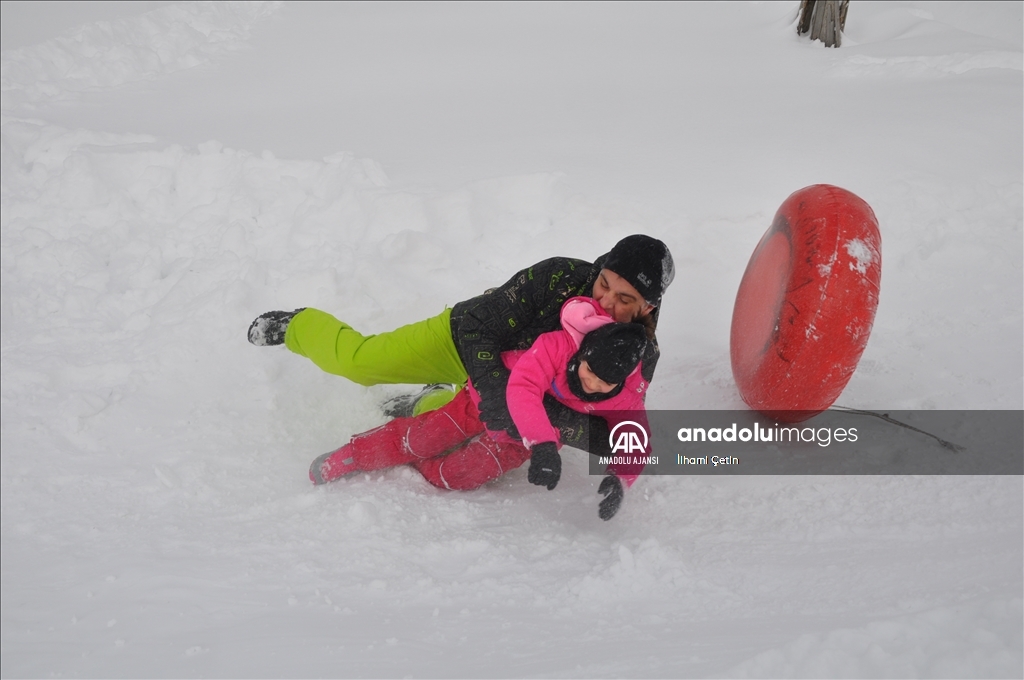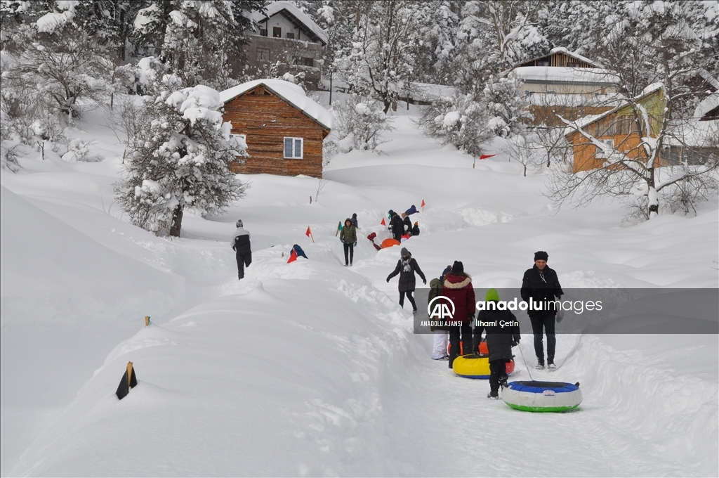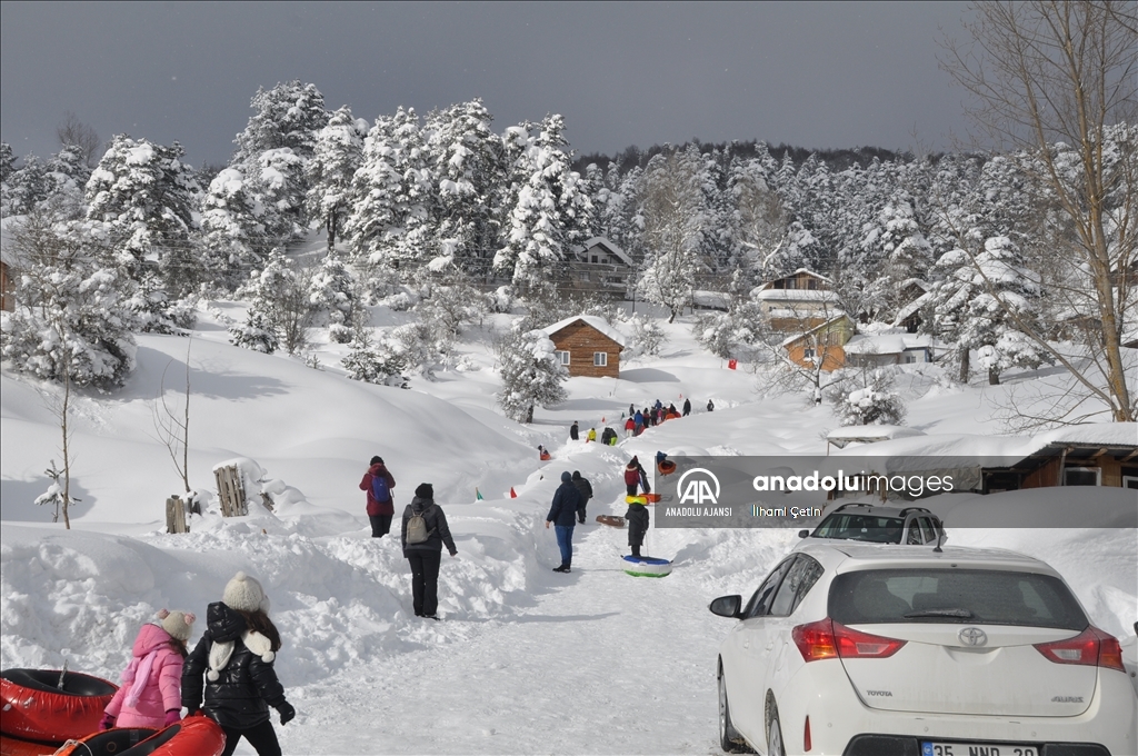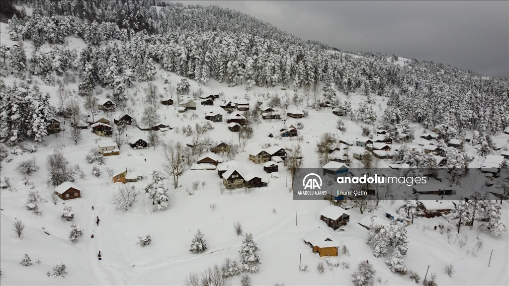 Bolu'nun doğal güzellikleriyle ünlü Abant Tabiat Parkı'ndaki gölün yüzeyi buzla kaplandı.